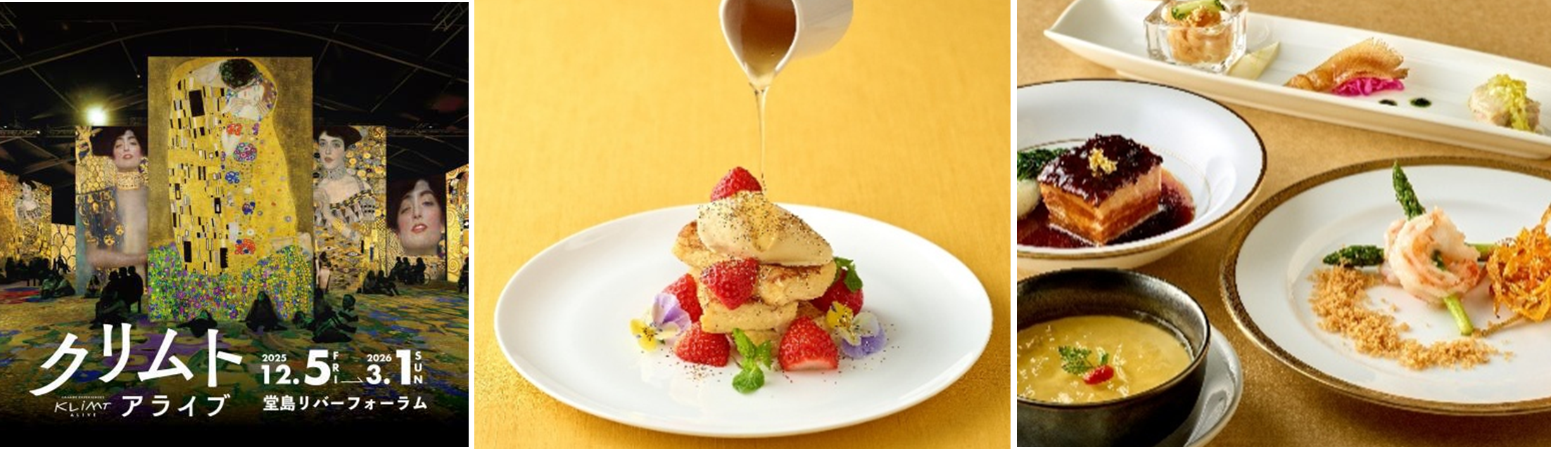リーガロイヤルホテル大阪 ヴィニェット コレクション(大阪市北区中之島、総支配人 中川 智子)の直営レストラン2店舗では、「クリムト・アライブ 大阪展」の開催に際し、期間限定のコラボレーションメニューを2025年12月5日(金)から2026年3月1日(日)まで提供いたします。