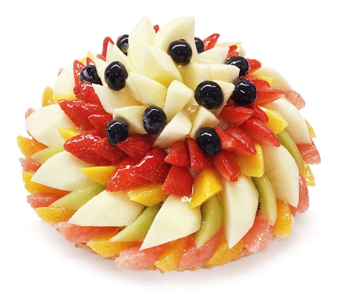 セゾンフリュイいちご、マンゴー、洋梨など色とりどりのフルーツを優しい甘みのカスタードクリームのベースに飾り付けました。様々なフレッシュフルーツの美味しさをお楽しみいただける華やかなケーキです。