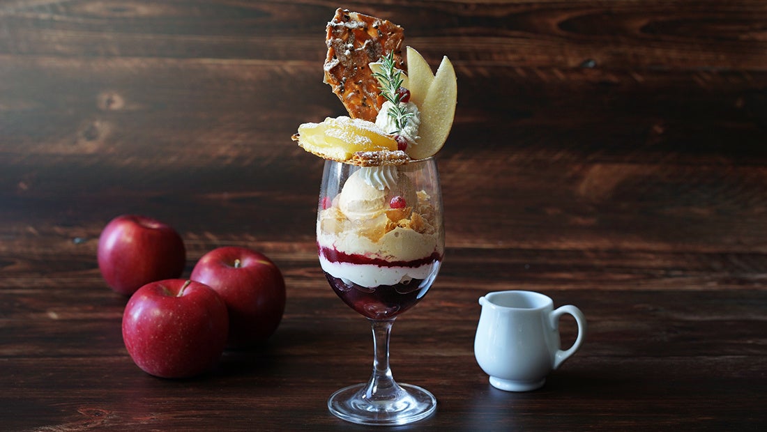 【ロイヤルパインズホテル浦和】冬限定のりんごパフェ「青森産紅玉のアップルパイパフェ~あたたかいシナモンソースと共に~」を2025年12月1日(月)~31日(水)で販売