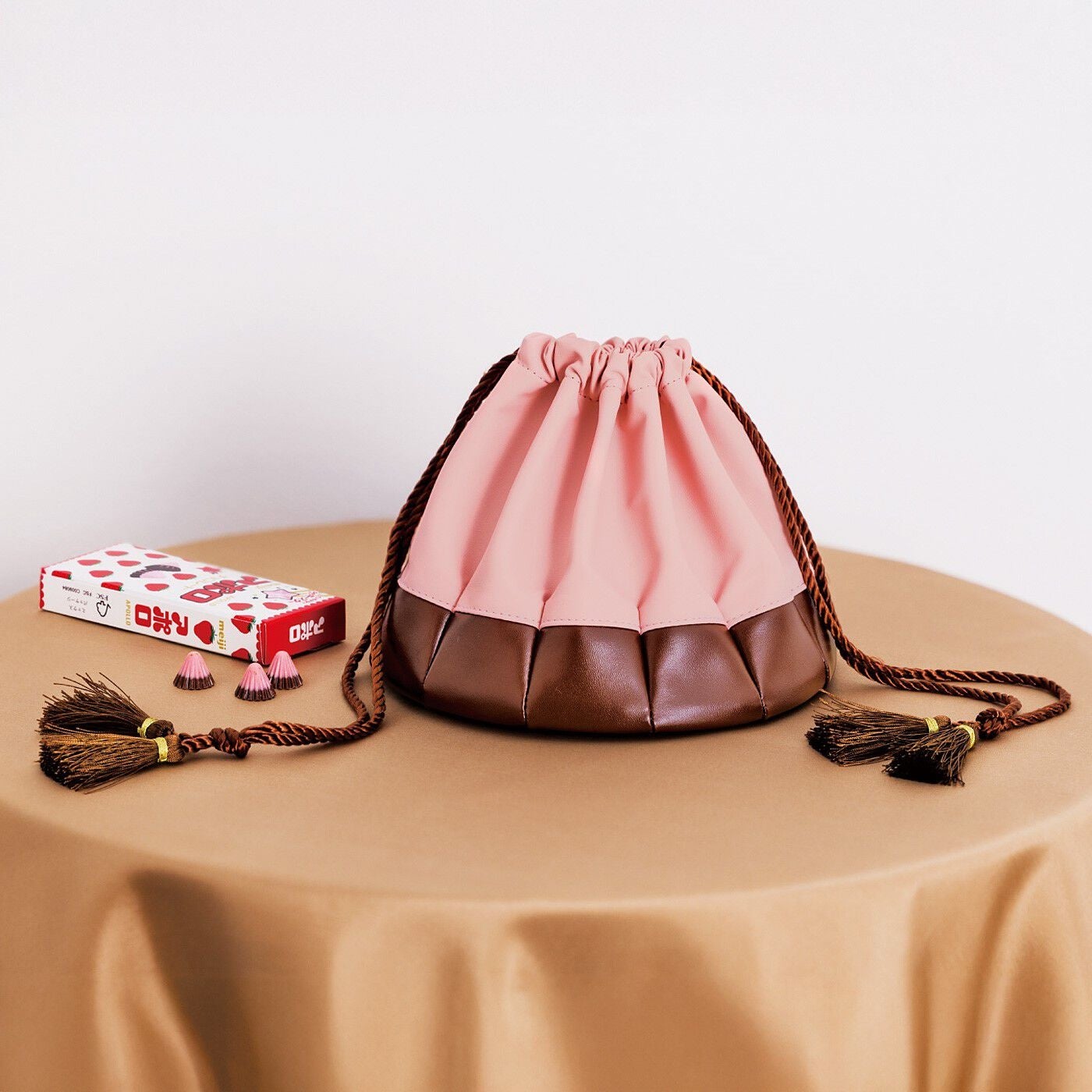きんちゃくみたいなアポロの形から着想を得たキュートなきんちゃくバッグです。