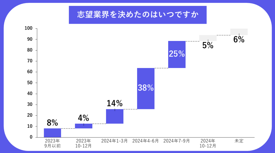・志望業界の決定タイミングは 4~6月が最多。情報発信・母集団形成はこの時期がカギ。