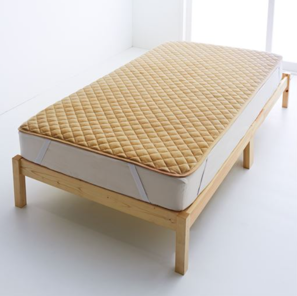 敷布団、マットレスにも使えるパッドシーツです。中わた入りのキルティングで、ふんわり感も増し、快適な寝心地。汚れたらご家庭の洗濯機で気軽に洗えるので、清潔にお使いいただけます。