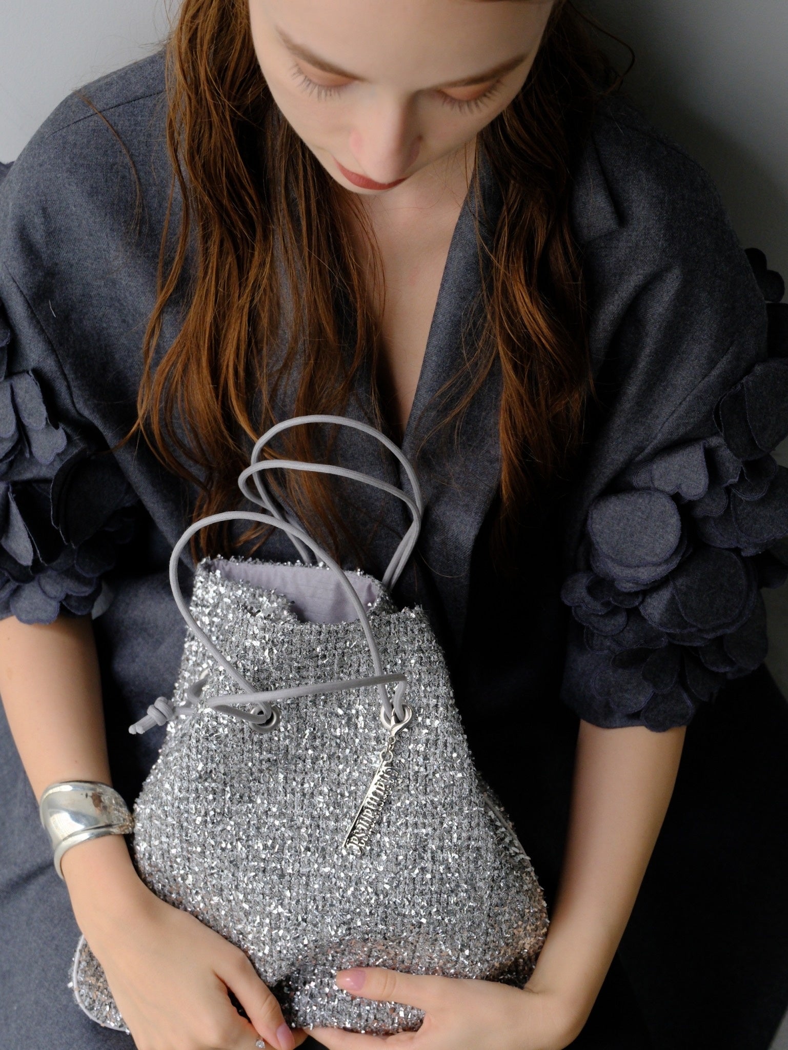 「ツイード 巾着」 シルバーモール18,700円(税込)