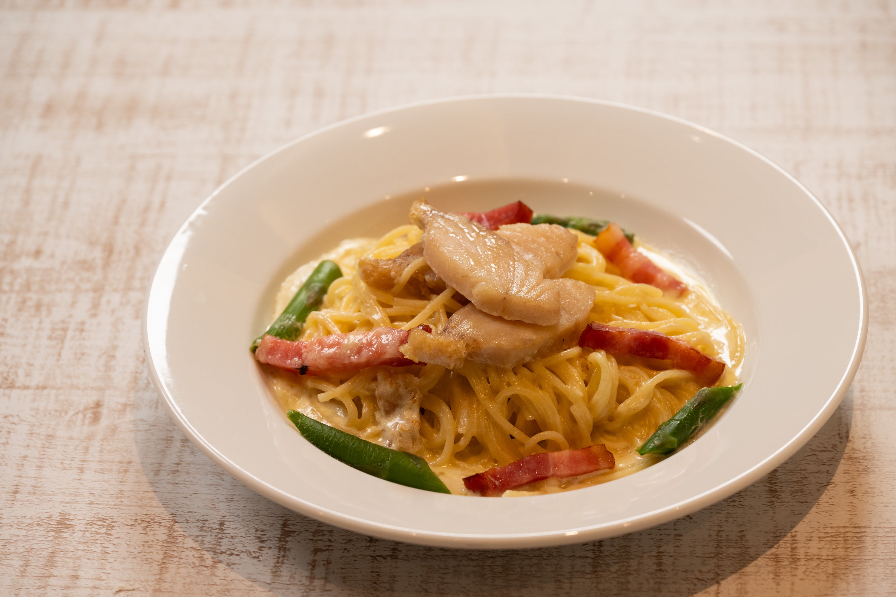 タラとベーコンとグリーンアスパラのクリームパスタ ¥1,700(税込)