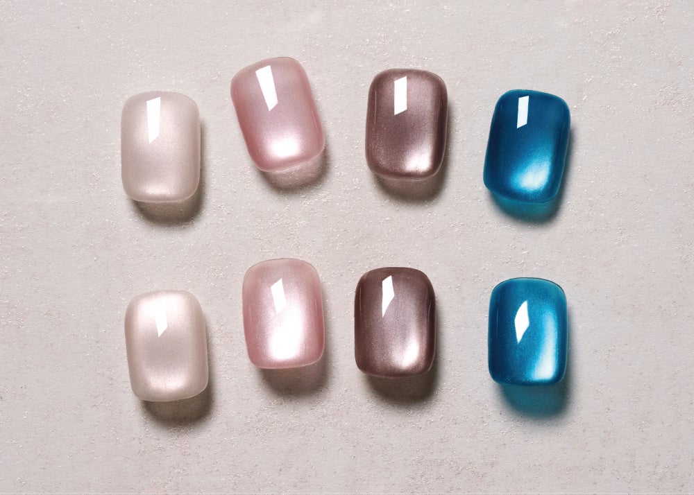 ■ 新感覚の濃密3ミクロンマグちゅるんとした透け感と強い輝きを両立した新感覚の”とろマグ”が新登場。ブランド史上最小の超微粒子3ミクロンマグネットパールを贅沢に配合。従来より液の粘度を高めることで、マグネットで集めたパールが散ってしまう現象を極限まで抑えた新処方です。濃密でとろけるようなテクスチャーが特徴で、マグネットを近づけると白く光りを放つように輝くパールが”ギュン”と反応。テクニックいらずでちゅるんと艶めく奥行きのある仕上がりを叶えます。サロン級の美しいマグネットネイルを、簡単に楽しむことができる4色です。