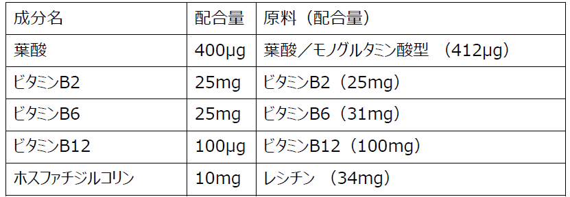 パントテン酸カルシウム、微粒酸化ケイ素、葉酸、 ビタミンB12