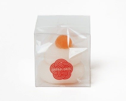パパブブレのお正月の定番となった、鏡餅型グミ。今年一年の始まりに“福を飾る”お菓子として誕生したアイテムで、年神様をお迎えする鏡餅をモチーフに、白いお餅の上に小さな橙のみかんを乗せた愛らしいシルエットが特徴です。