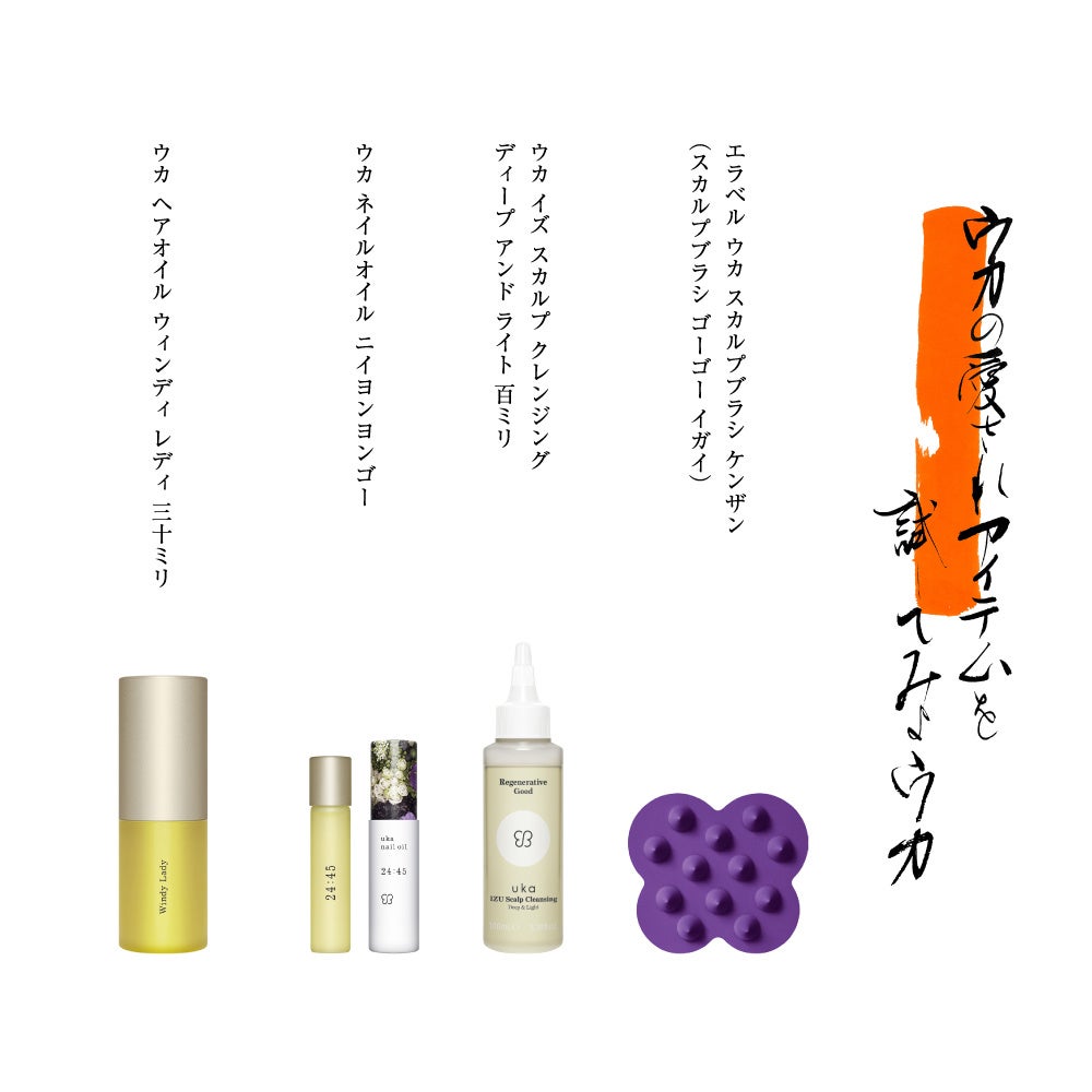 ウカのベストセラーアイテムを揃えたセット。人気のケンザンとスカルプクレンジングの頭皮ケアと、ネイルオイルと、ヘアオイルで髪から手元まで贅沢なケアを。初めてウカをご利用いただく方、ぜひ一度お試しください!