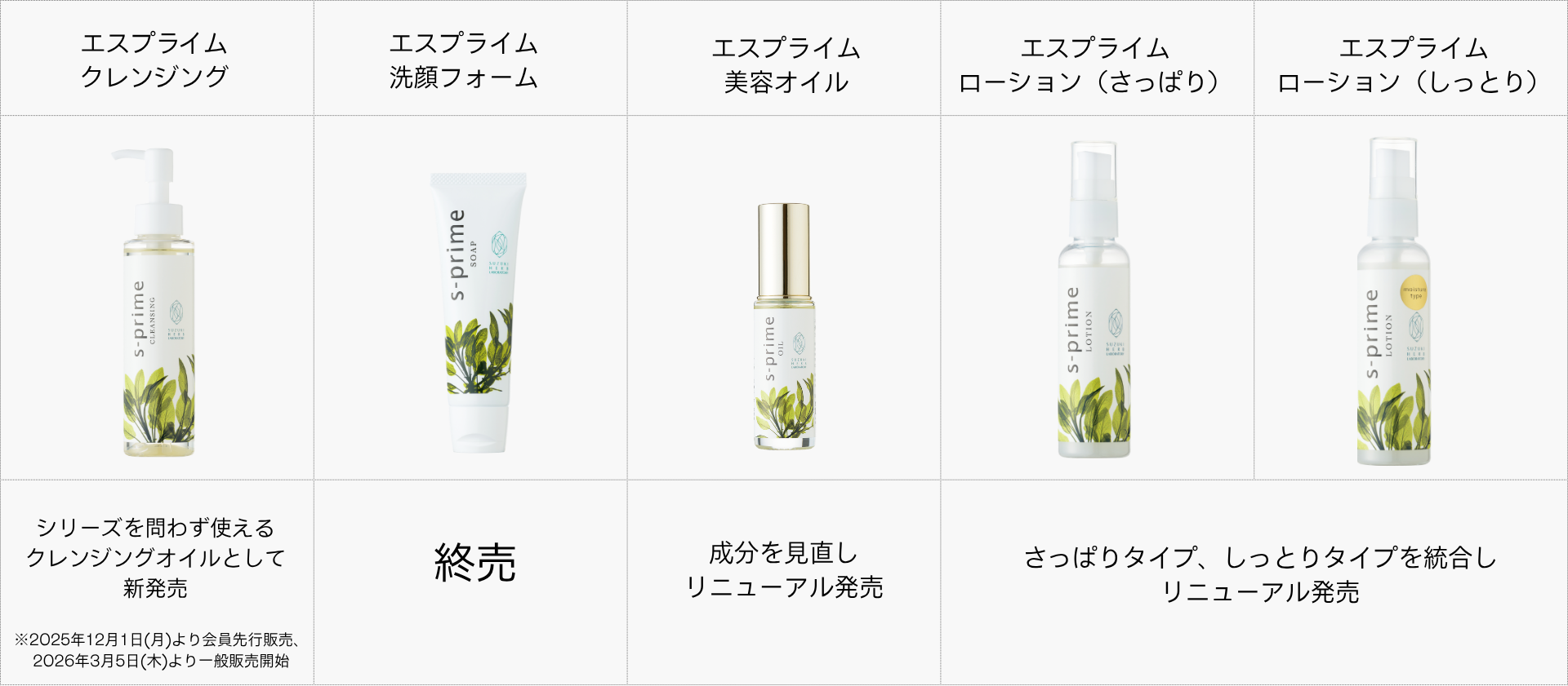 《エスプライムシリーズ》は3つのポイントからリニューアルを行います。【POINT1. シリーズ5アイテムから2アイテムへ シンプルで迷わないラインナップへ】