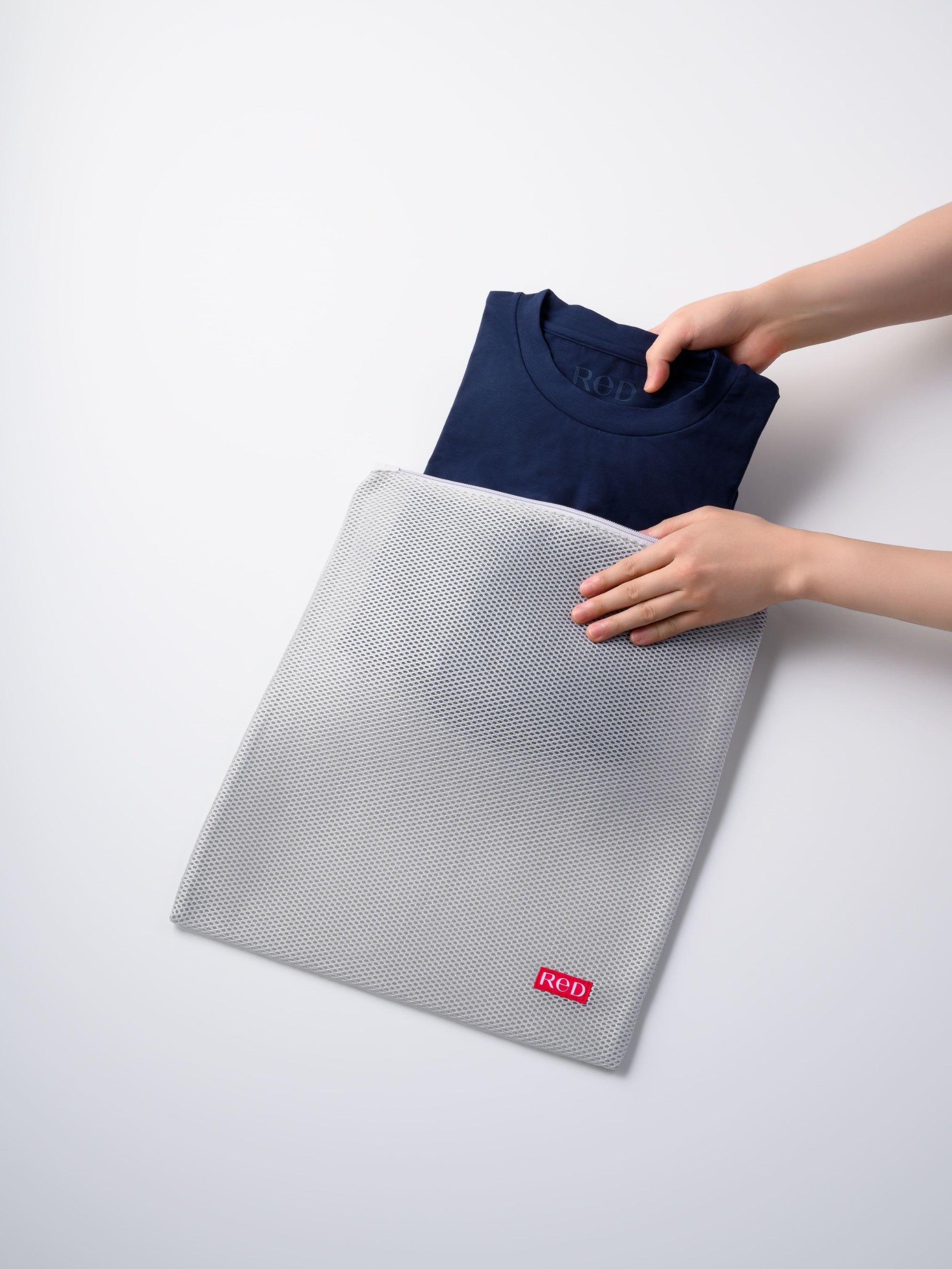 対象店舗で15,000 円(税込)以上のReD 商品をご購入いただいた方へ、オリジナルランドリーメッシュポーチを提供します※。