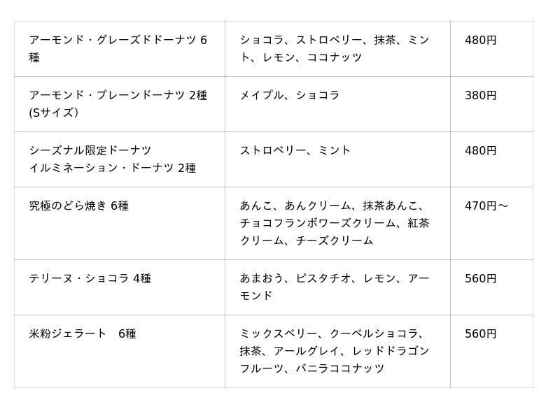 スイーツラインナップ (税込価格)
