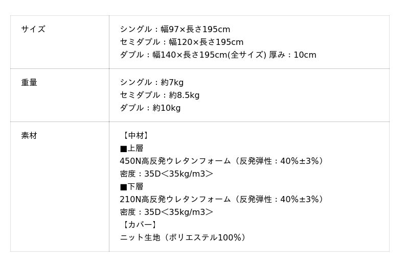 表面は、業界最高レベルの硬さ450Nウレタンを採用したスーパーハード層。沈み込みにくく体圧が均一にかかるため、腰への負担も軽減します。