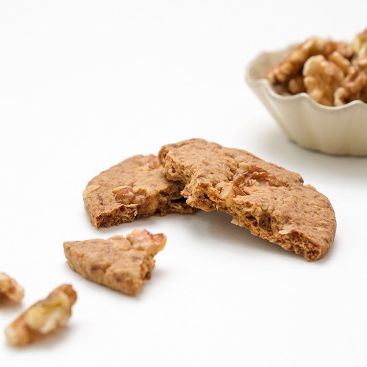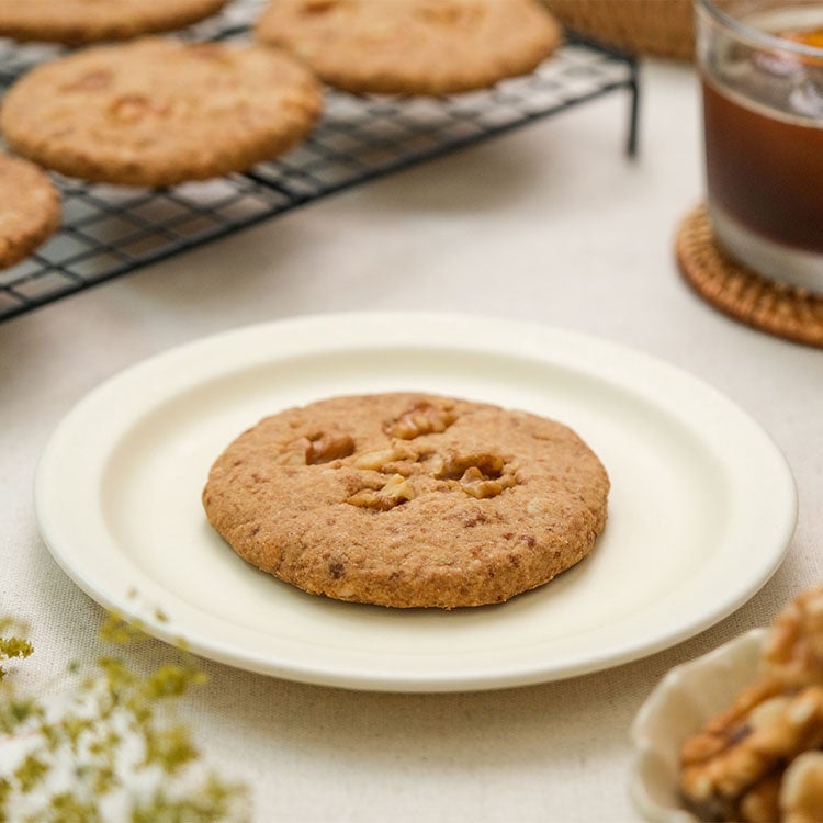 オートミールの香ばしさに、メープルシロップの自然な甘みが重なり、アクセントのくるみが食感と香りのリズムを作ります。1枚で食べ応えがあり、忙しい時の軽食にもなるヘルシーなのに満足なクッキーです。