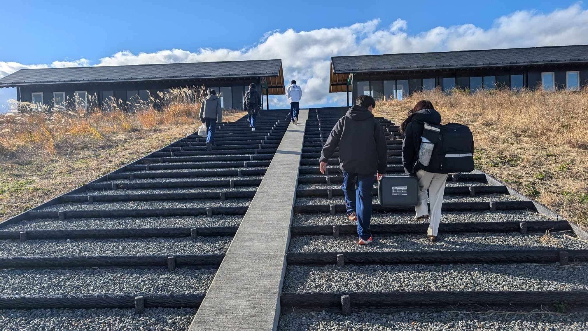 防潮堤を登り、防災と環境を考える。