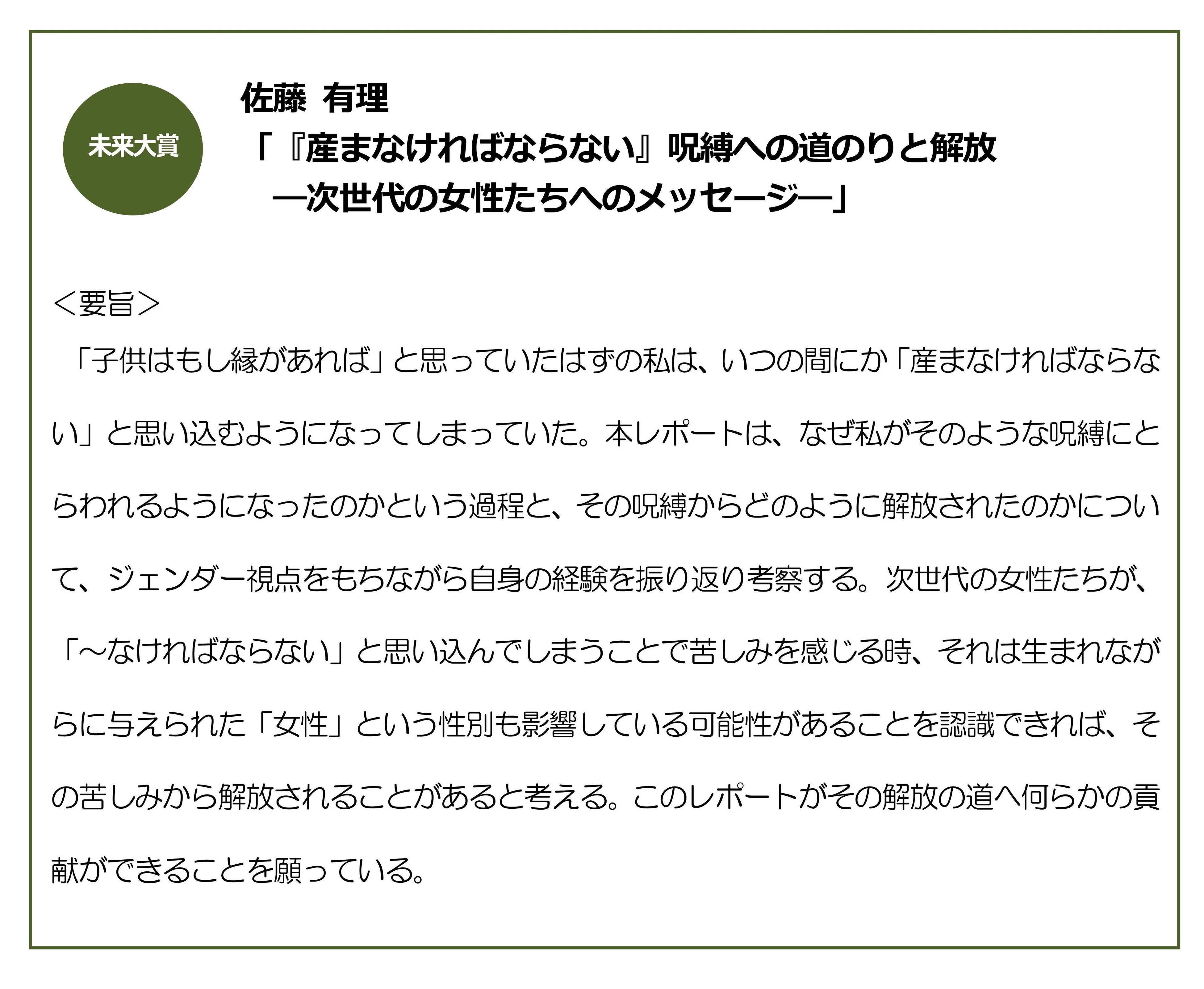 「第8回 日本女性学習財団 未来大賞」受賞レポート要旨