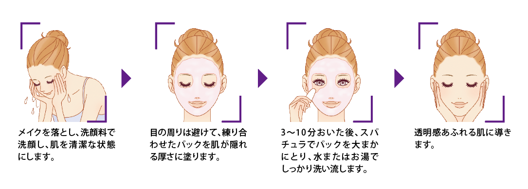タンパク分解酵素(プロテアーゼ)配合のマスクと専用のピックアップクリームをパックの直前に混ぜ合わせることで、酵素を活性化させ、肌のうるおいを守りながら古い角質をやさしく取り除き、透明感あふれる肌に導きます。