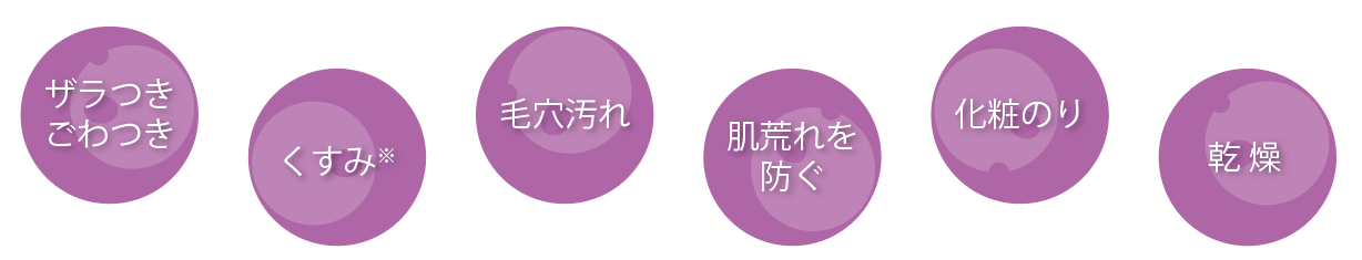 普段のお手入れでは落としきれない余分な角質を、酵素(プロテアーゼ:洗浄補助成分)がすばやく分解し優しく取り去ります。