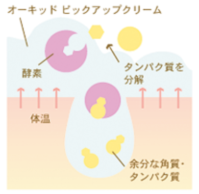 ピックアップクリーム中の水分と、肌の体温で酵素はさらに元気になります。