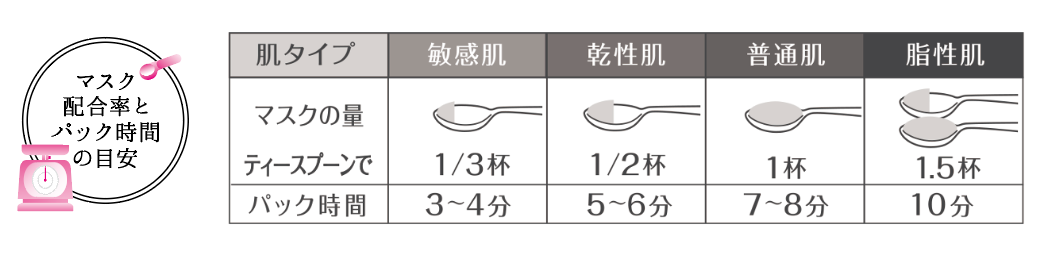 肌のコンディションに合わせて、酵素の入った粉状のマスクの配合量やパック時間を調整できます。