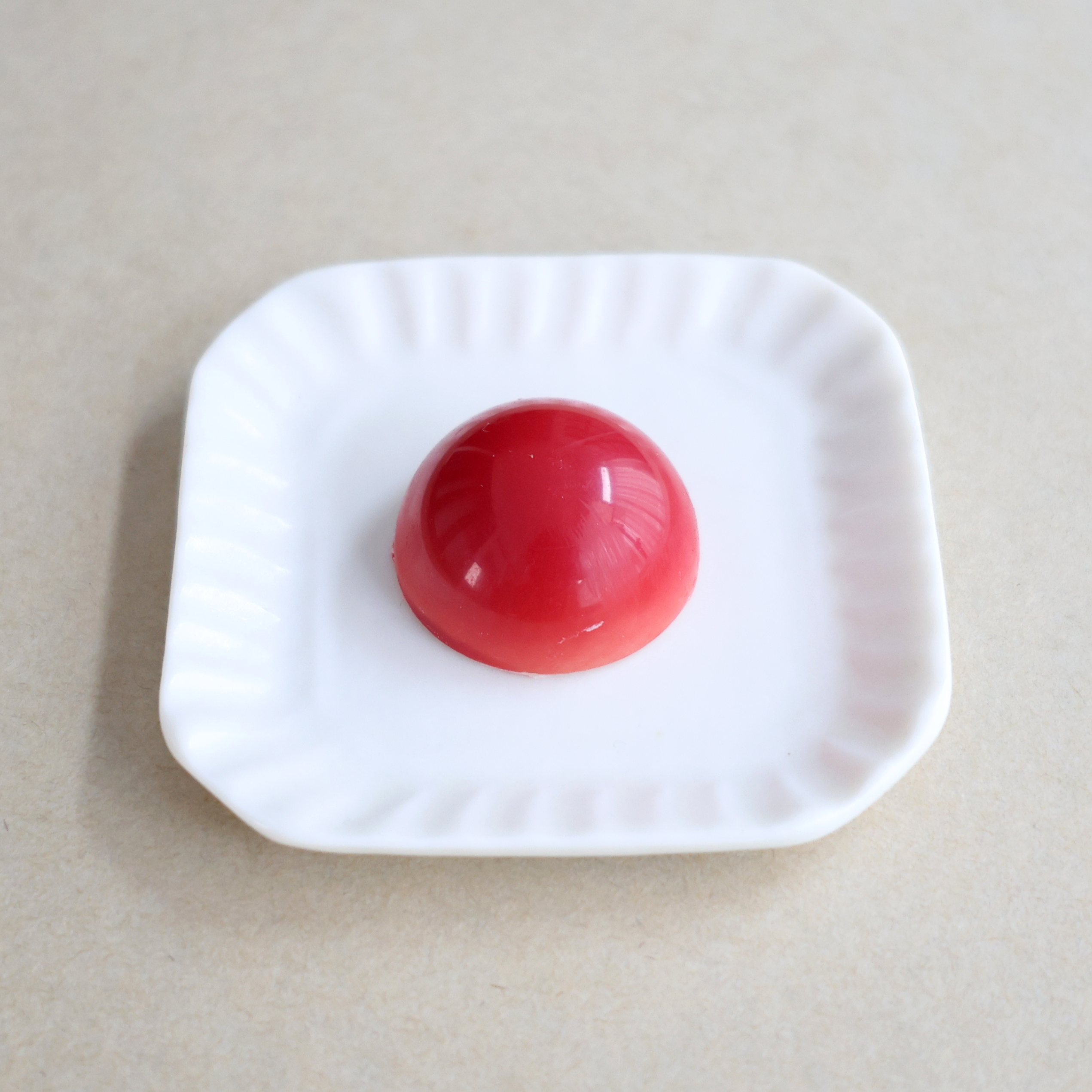 ラズベリーガナッシュのボンボン。ガナッシュはラズベリーピューレをじっくり煮詰めてほんの少しだけミルクチョコレートを加えました。ラズベリーの風味をたっぷり感じていただける本格的なボンボンです