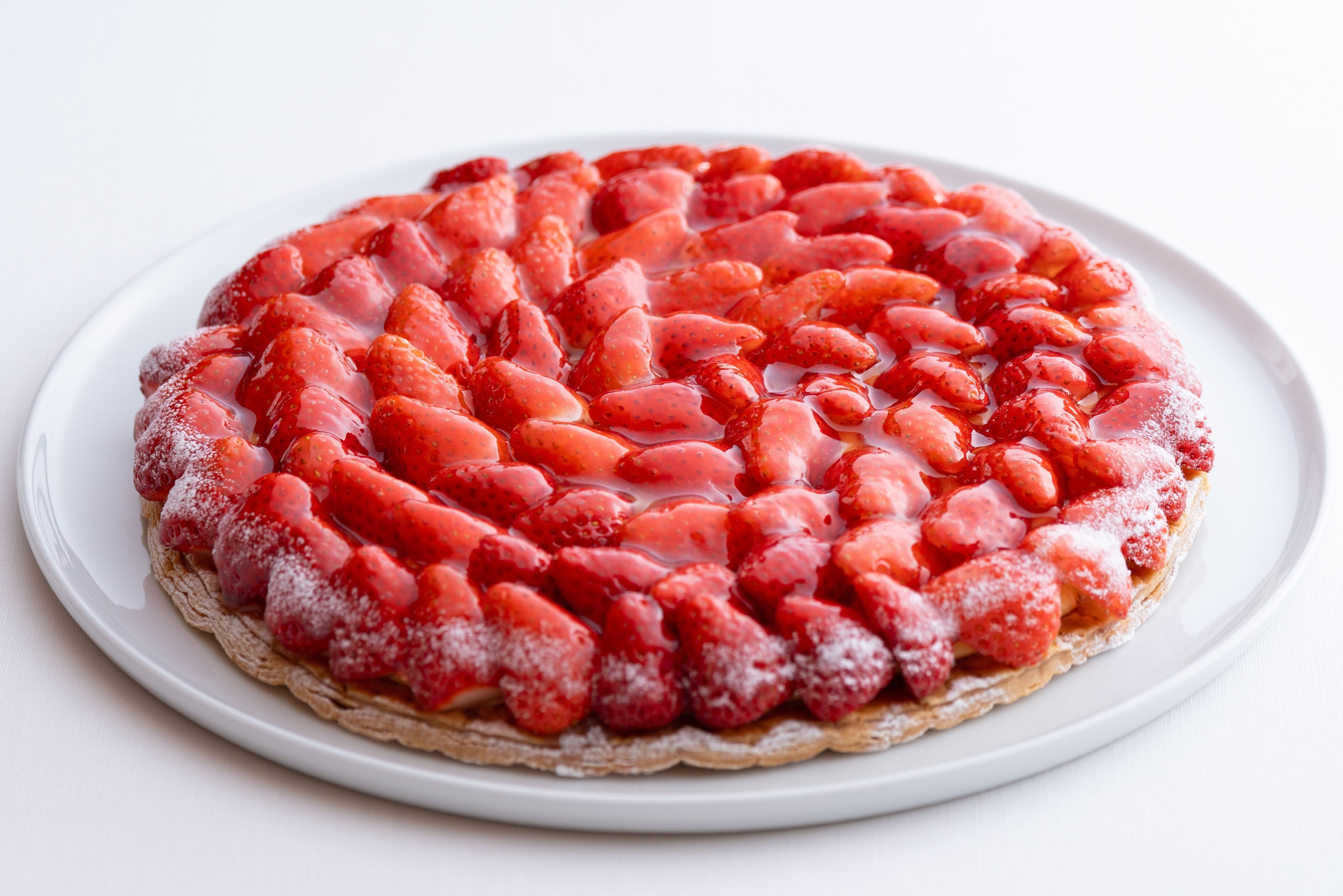 2階ペストリーブティックでは、旬を迎える苺のスイーツがいっぱいの「Strawberries Fest (ストロベリーフェスト)」を開催します。苺を贅沢に使用した華やかなスイーツがショーケースに並び、一足早い春をお楽しみいただけます。京都府八幡市の渋谷農園の苺を敷き詰めたストロベリーパイや、内海エグゼクティブ ペストリーシェフが作る新作・定番商品などもご用意しています。