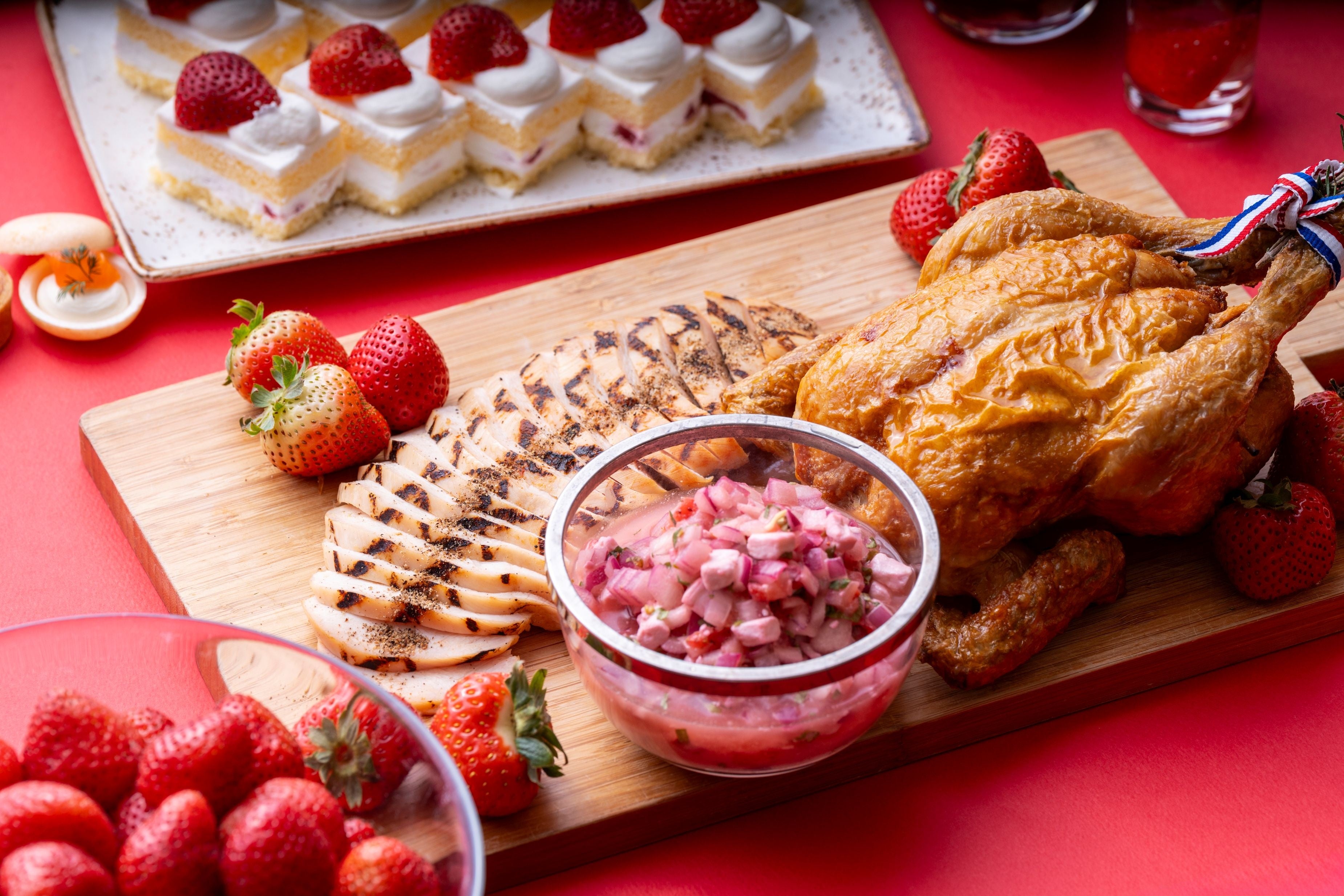 丸鶏ローストチキン、フェタチーズと苺のサルサ