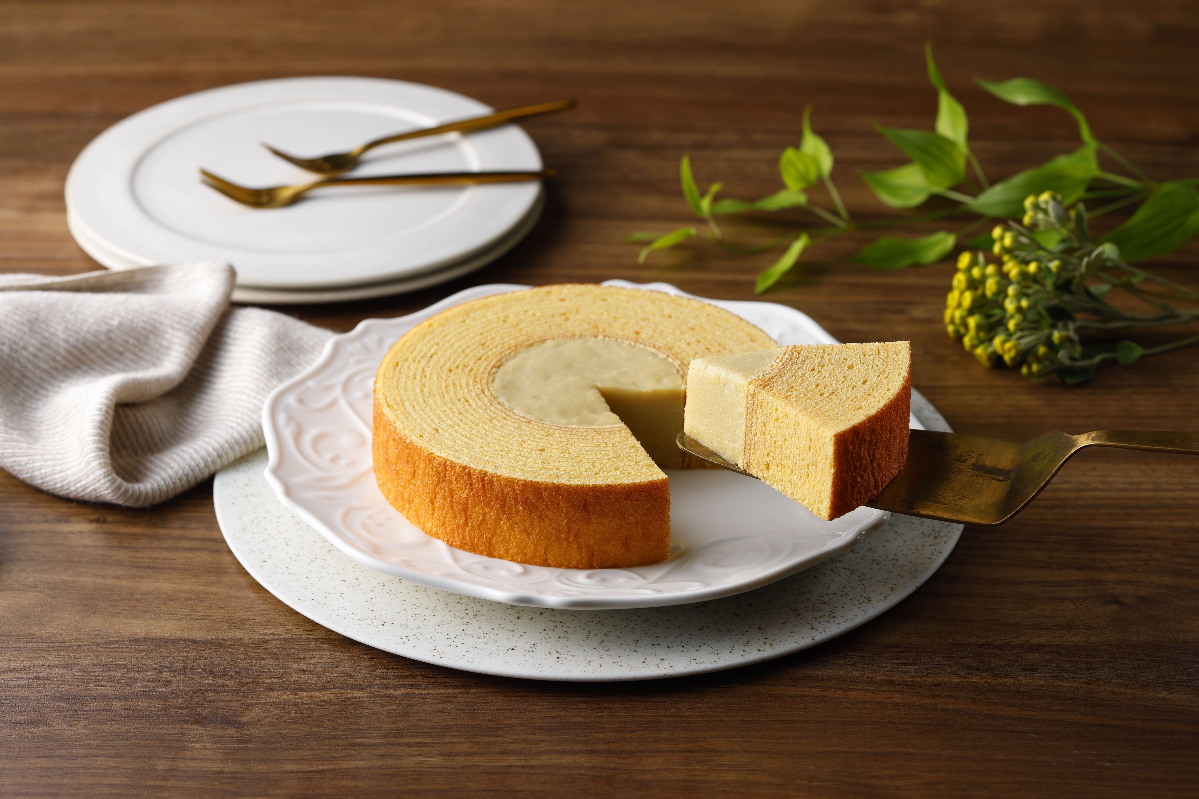 ・バウムクーヘン生地を一層一層丁寧に焼き上げることで、しっとりとやわらかい食感を実現しました。