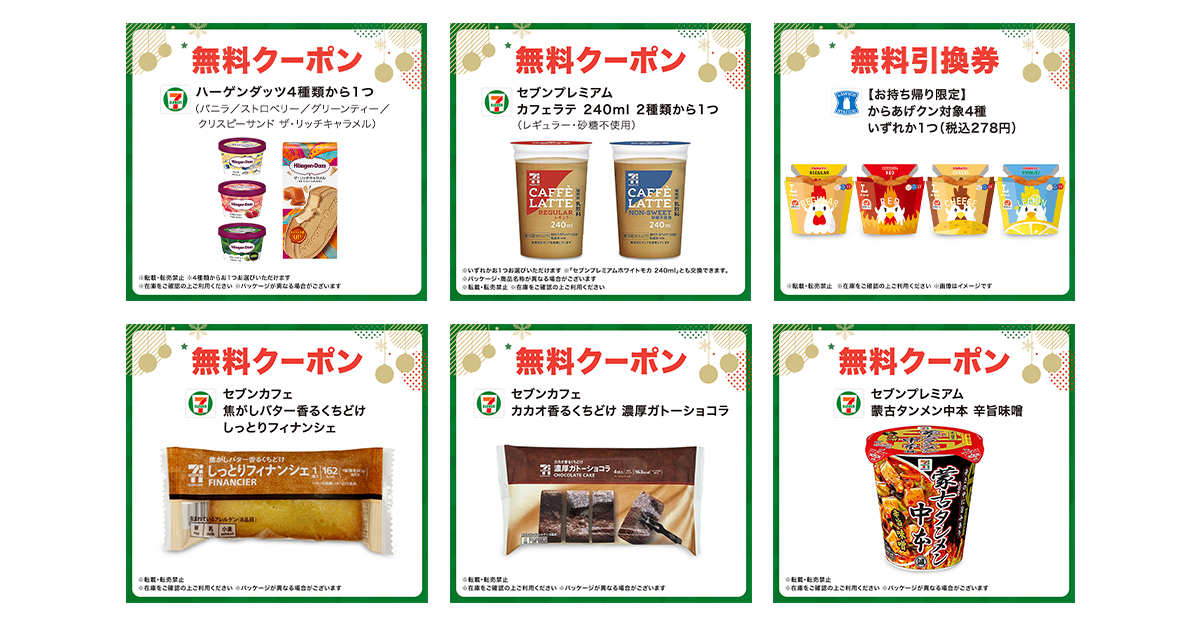 また昨年から引き続き、コンビニクーポンも登場。寒い季節に嬉しいコンビニのあったかメニューや贅沢なスイーツが楽しめるクーポンが抽選で当たります。