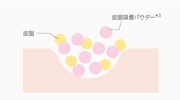 皮脂吸着パウダー*³を配合し、余分な皮脂を吸着することで、メイクアップ時の毛穴落ちやメイク崩れや浮きを防ぎ、一日中さらさらでフィルターがかかったような仕上がりを実現します。