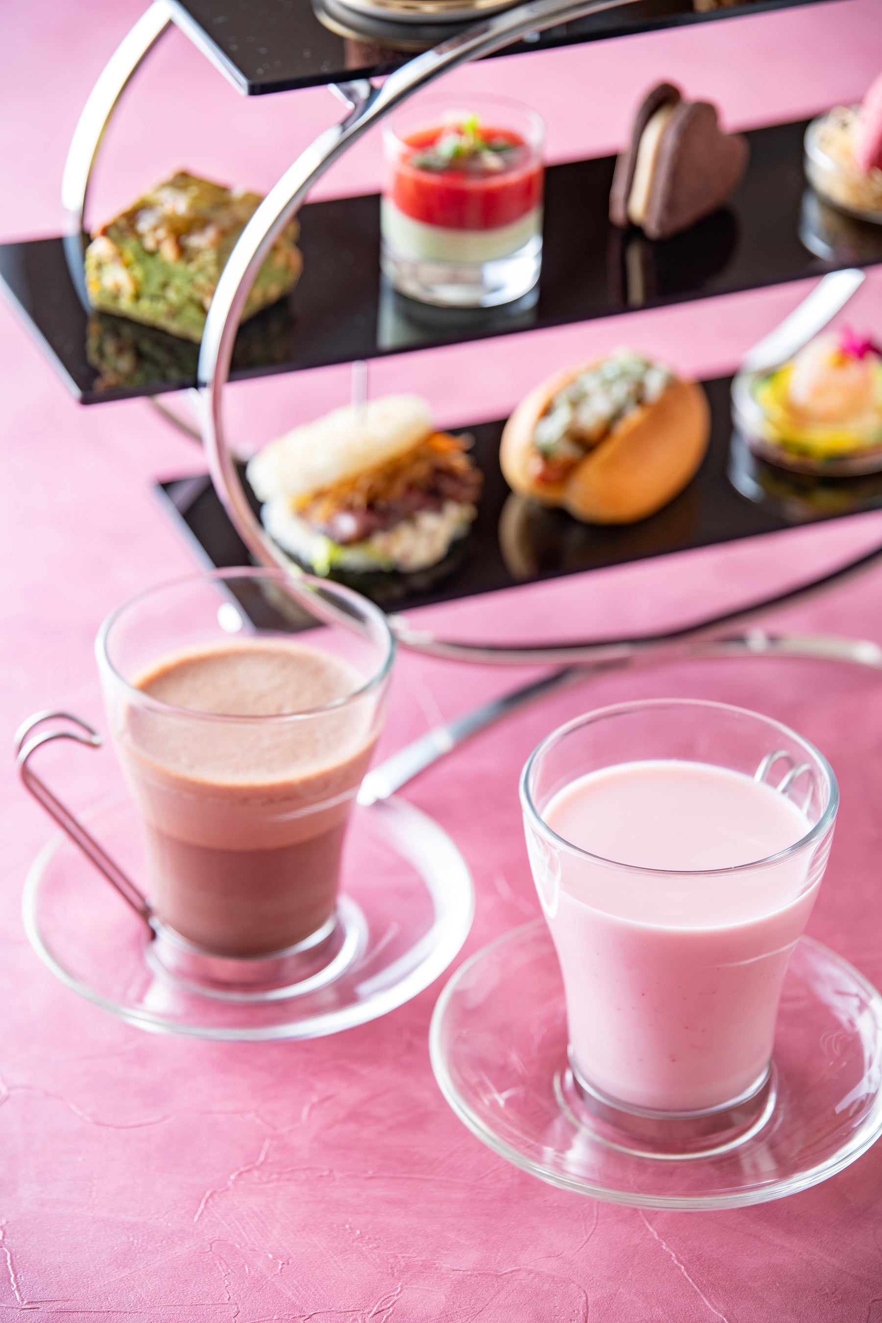 今回のアフタヌーンティーセットには、いちごミルクとココアも追加いたします。