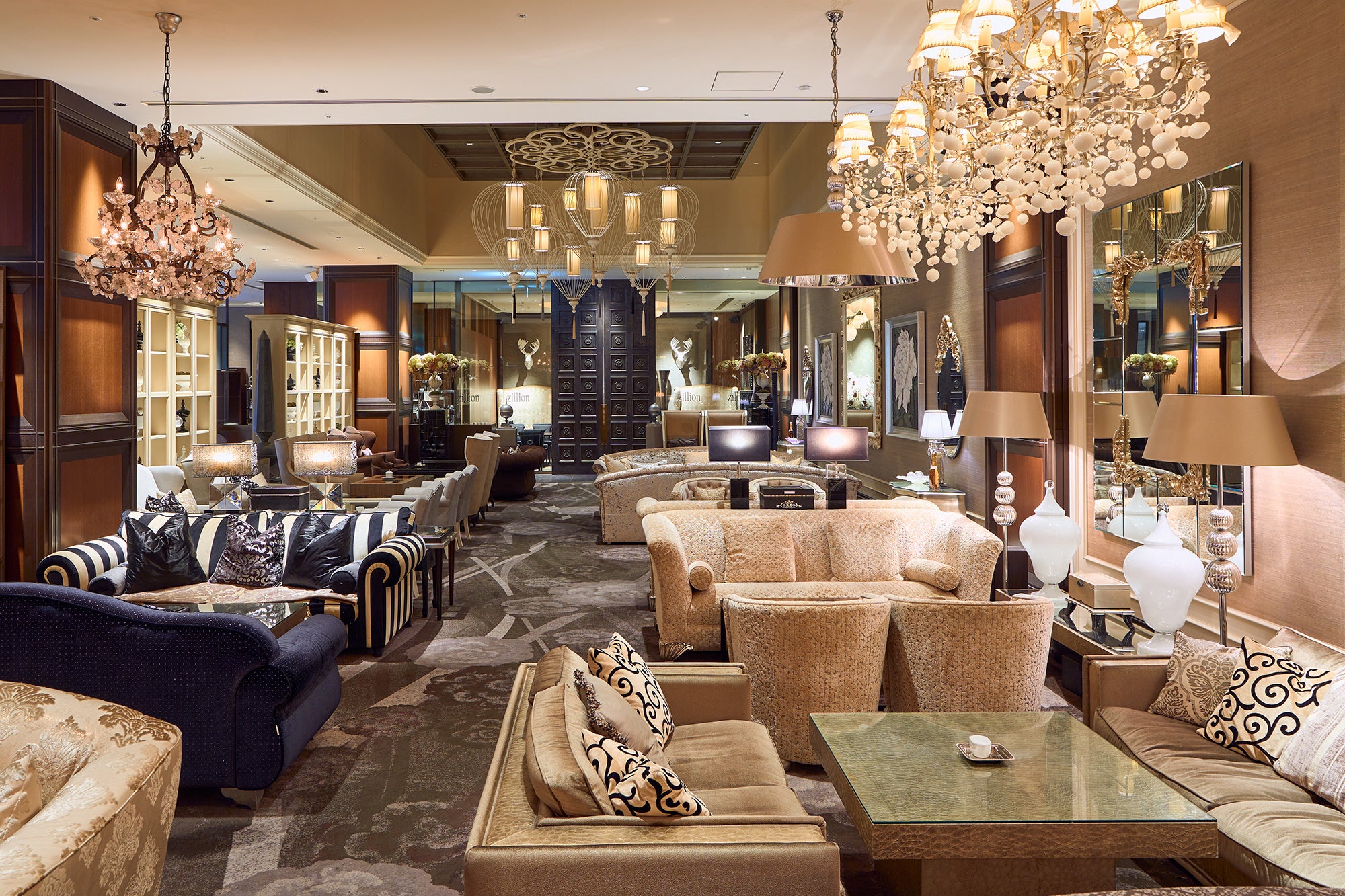 上質なインテリアの中にゆったりとお掛けいただけるソファ席を配した華やかな店内では、見た目にも鮮やかな美食を提供します。一角に設けられたデザート工房「アトリエ・デセール」で仕上げられるアフタヌーンティーやパフェ、パンケーキなどのスイーツの他、サンドイッチやハンバーガー、各種御膳など、軽食からしっかりしたお食事までさまざまな用途に対応できるバラエティ豊かなメニューをご用意しております。各種アルコールも取り揃えておりますので、夜はバーラウンジとしてもお楽しみいただけます。