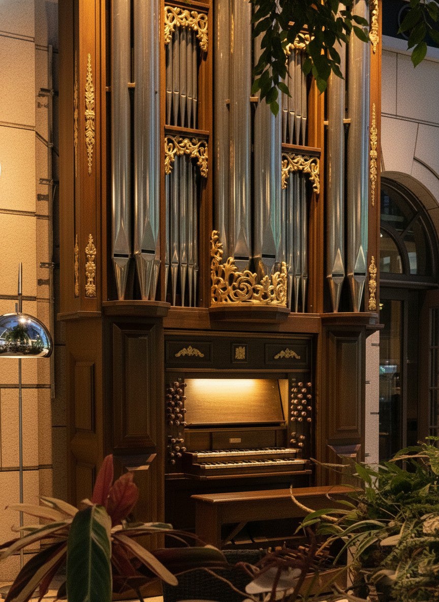 パイプオルガンコンサート開放感あふれるアトリウムガーデンの中、パイプオルガンの重厚な音色が降りそそぐ、クリスマスコンサート。
