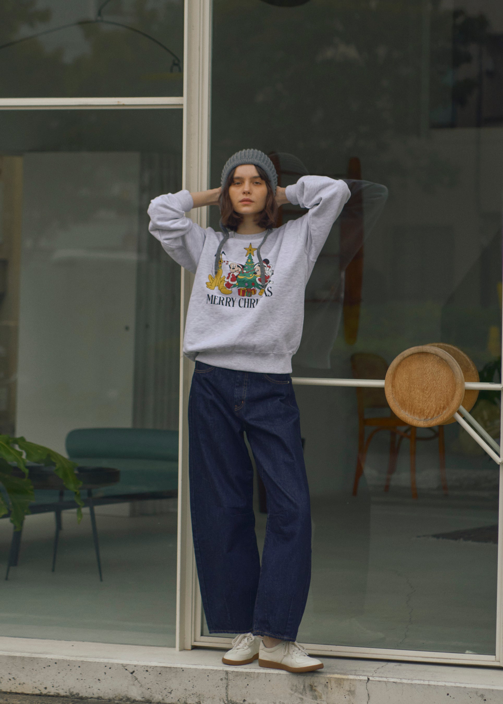 クリスマスプリントスウェット 12,100円(税込) カーブルーズデニム 22,000円(税込)