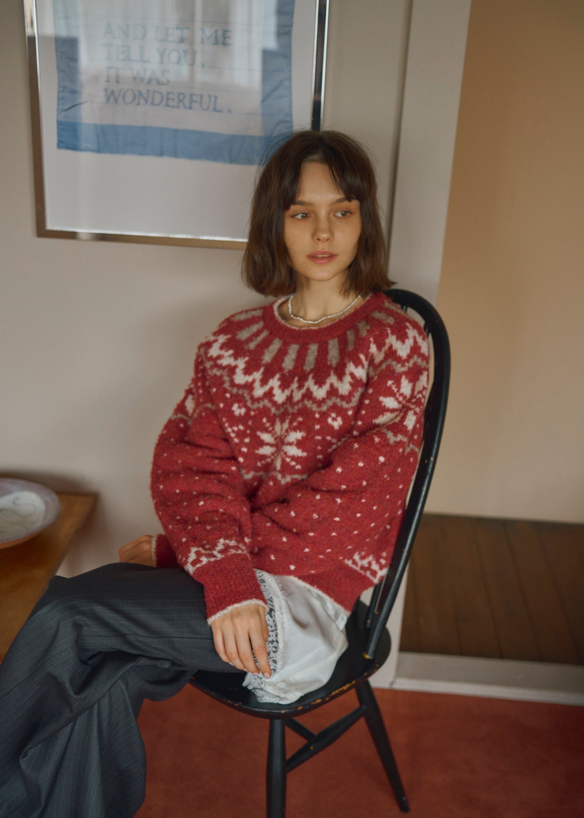 ラメニットとスカートのスパンコールがきらっと目を引くワントーンのブルーコーデをはじめ、雪柄やドットを取り入れたオリジナルの求心柄ニットにレースキャミを重ねたレイヤードスタイル、スウェットセットアップに存在感のあるボアアウターを合わせたコーデ、そしてクリスマスに着たくなるキャッチーで古着ライクなスウェットなど、バリエーション豊かに全13LOOKをご紹介します。