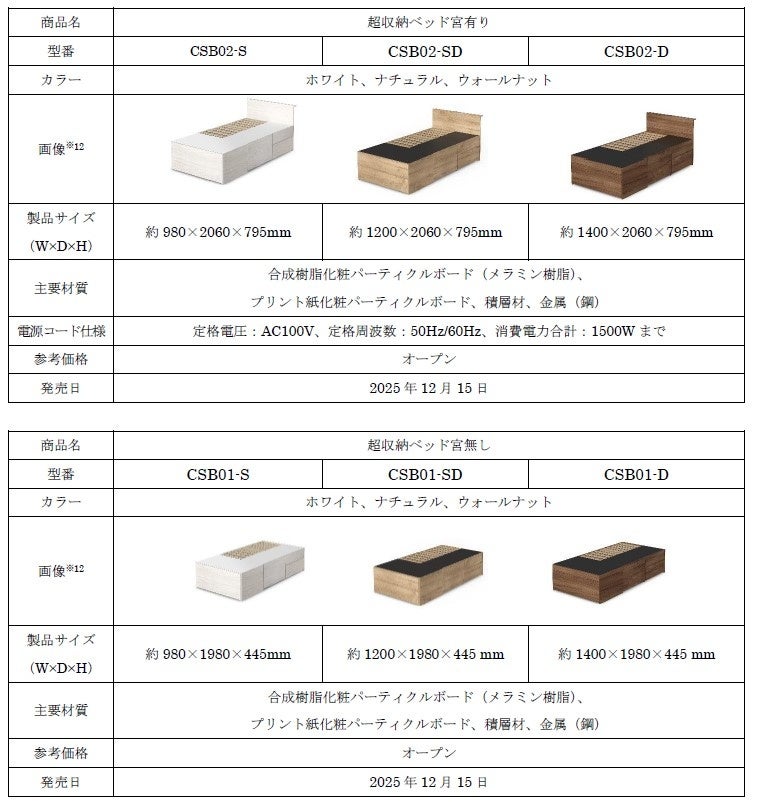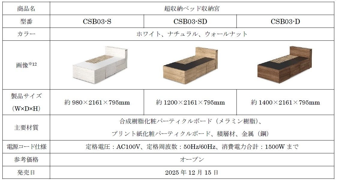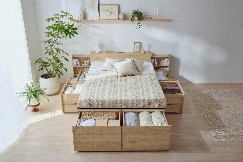 当社最大の引き出し容量約630L(※1)と収納容量約860L(※2)を実現!限られた空間を有効活用できる「超収納ベッド」発売