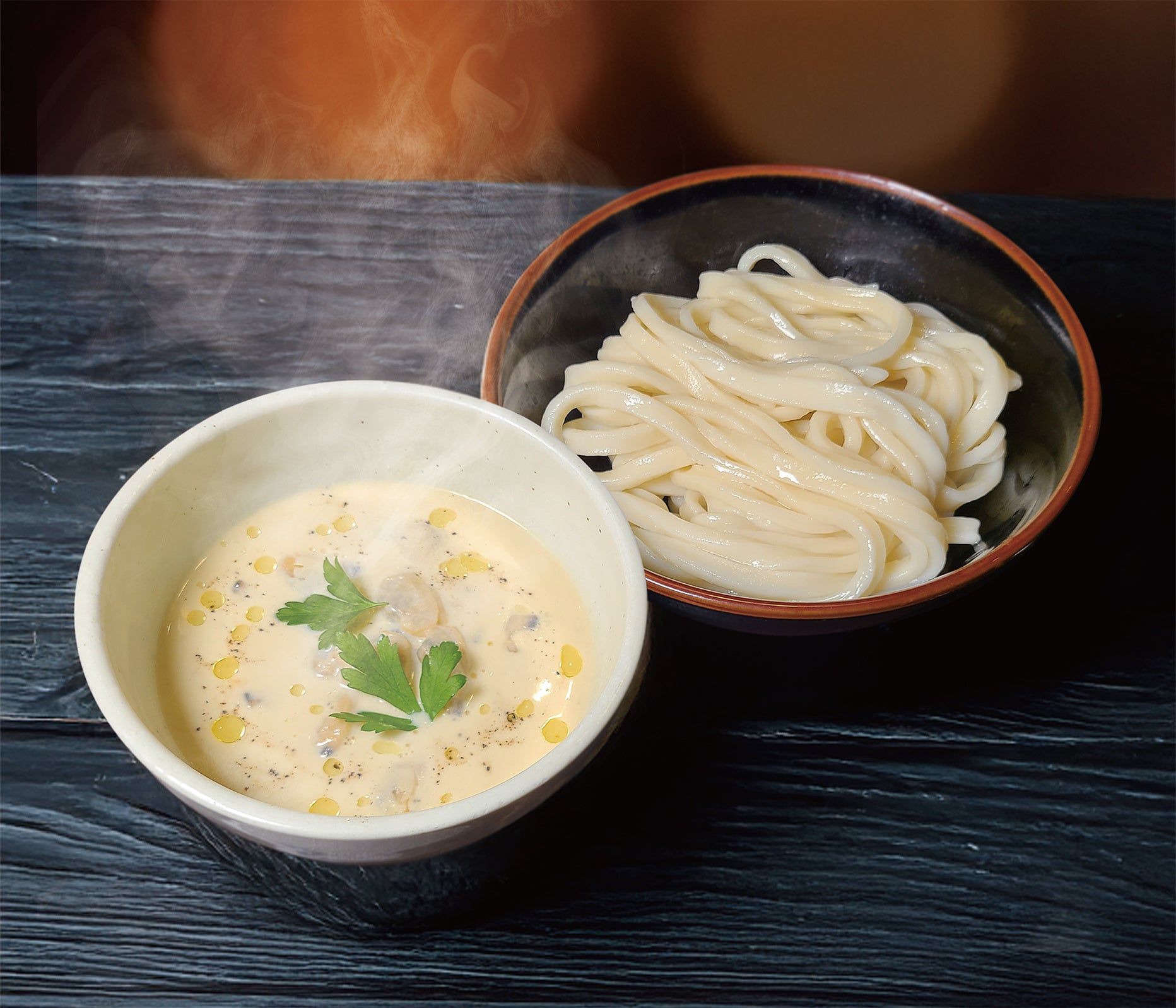 ポタージュでうどん!? 和洋折衷の濃厚つけ汁うどんが登場!肉つけうどん店「うつけ」期間限定「あさりとじゃが芋ポタージュつけうどん」