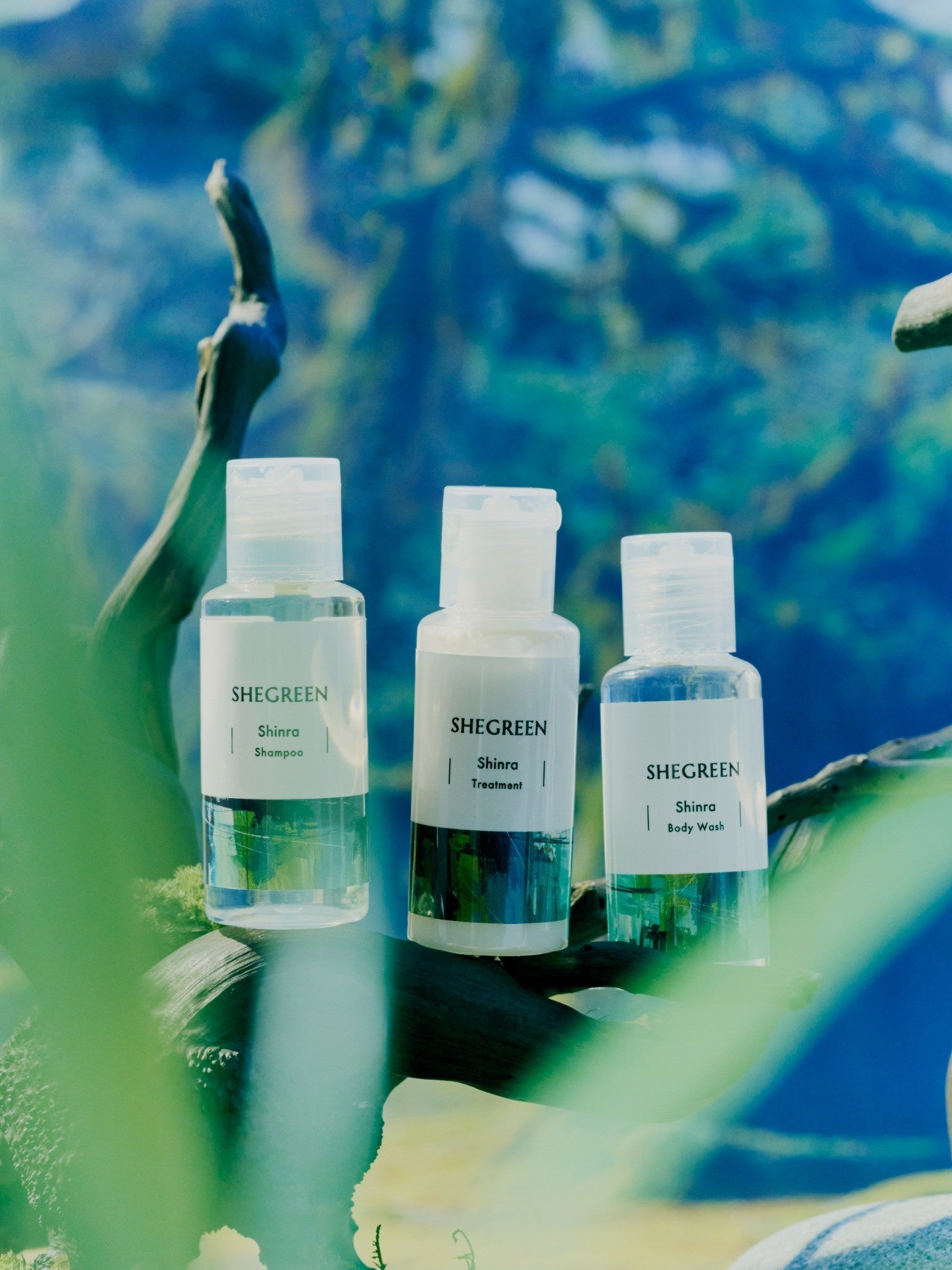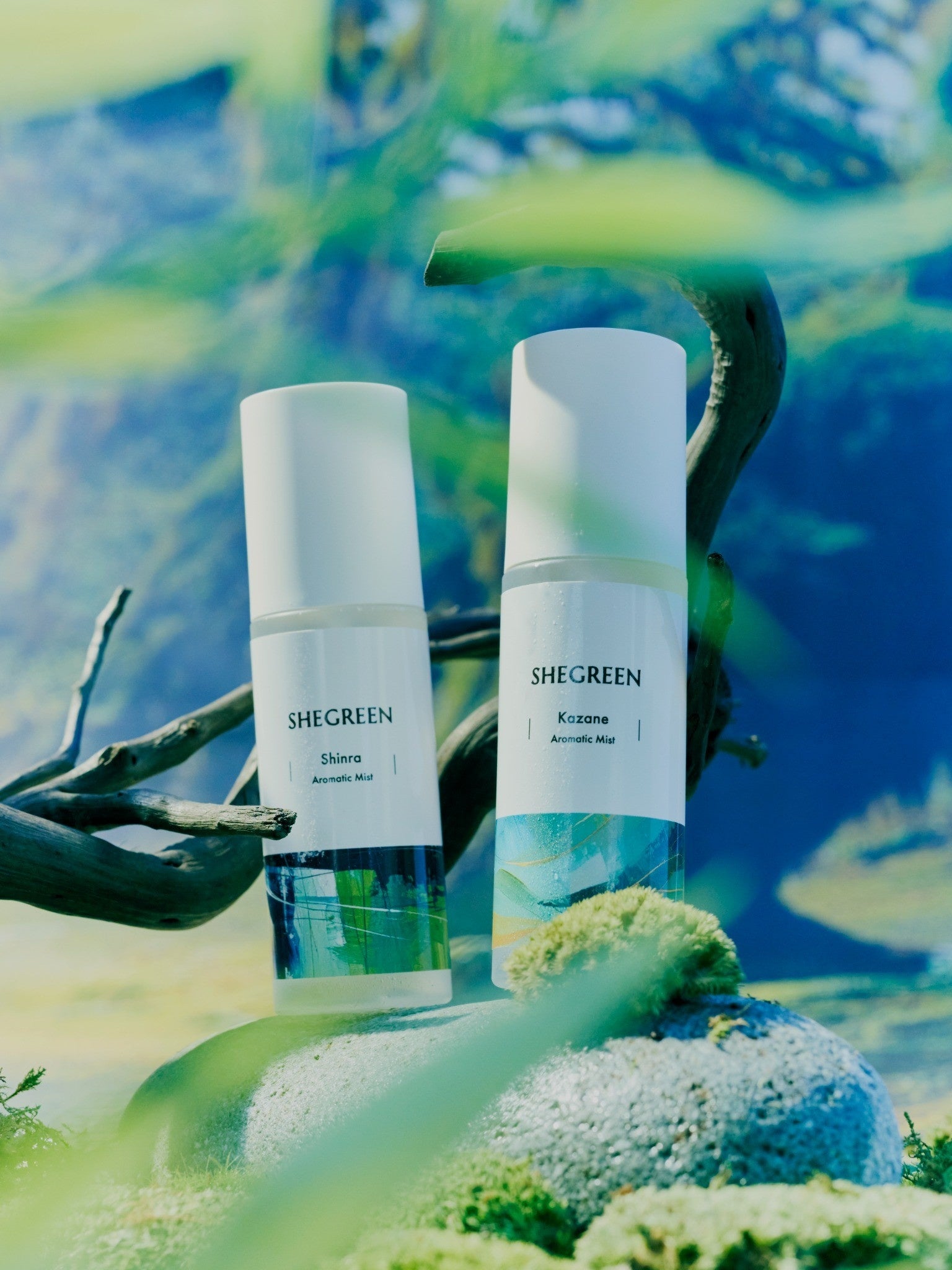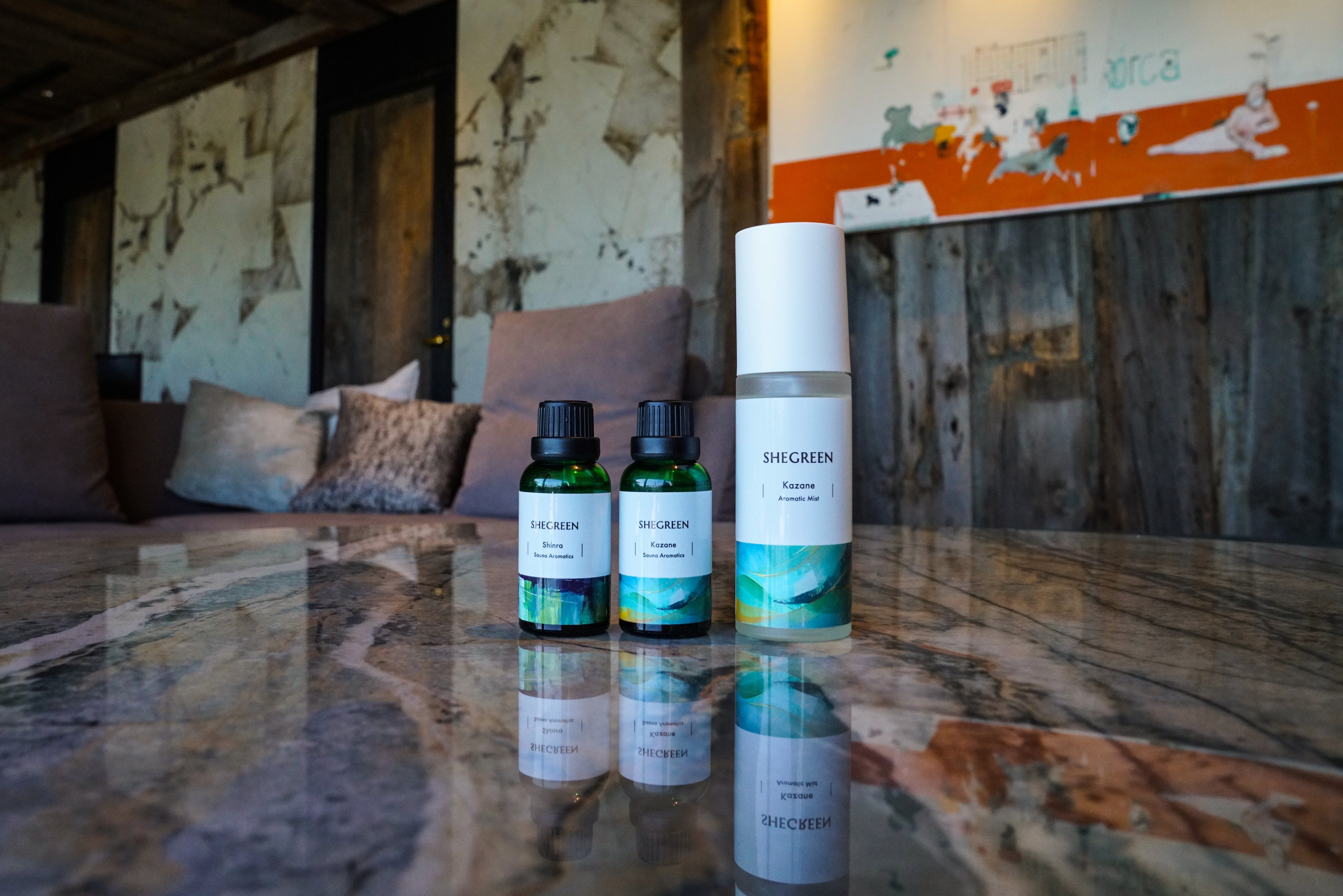 SHEGREENは、“その場所にしか宿らない香り”を通して、日本らしい美意識と静謐なウェルネス体験をデザインします。 森・風・大地の記憶に着想を得たウッディ&アーシーな香りは、空間の「記憶」をゲストの心に刻み、五感をひらく“静けさの処方”として機能します。