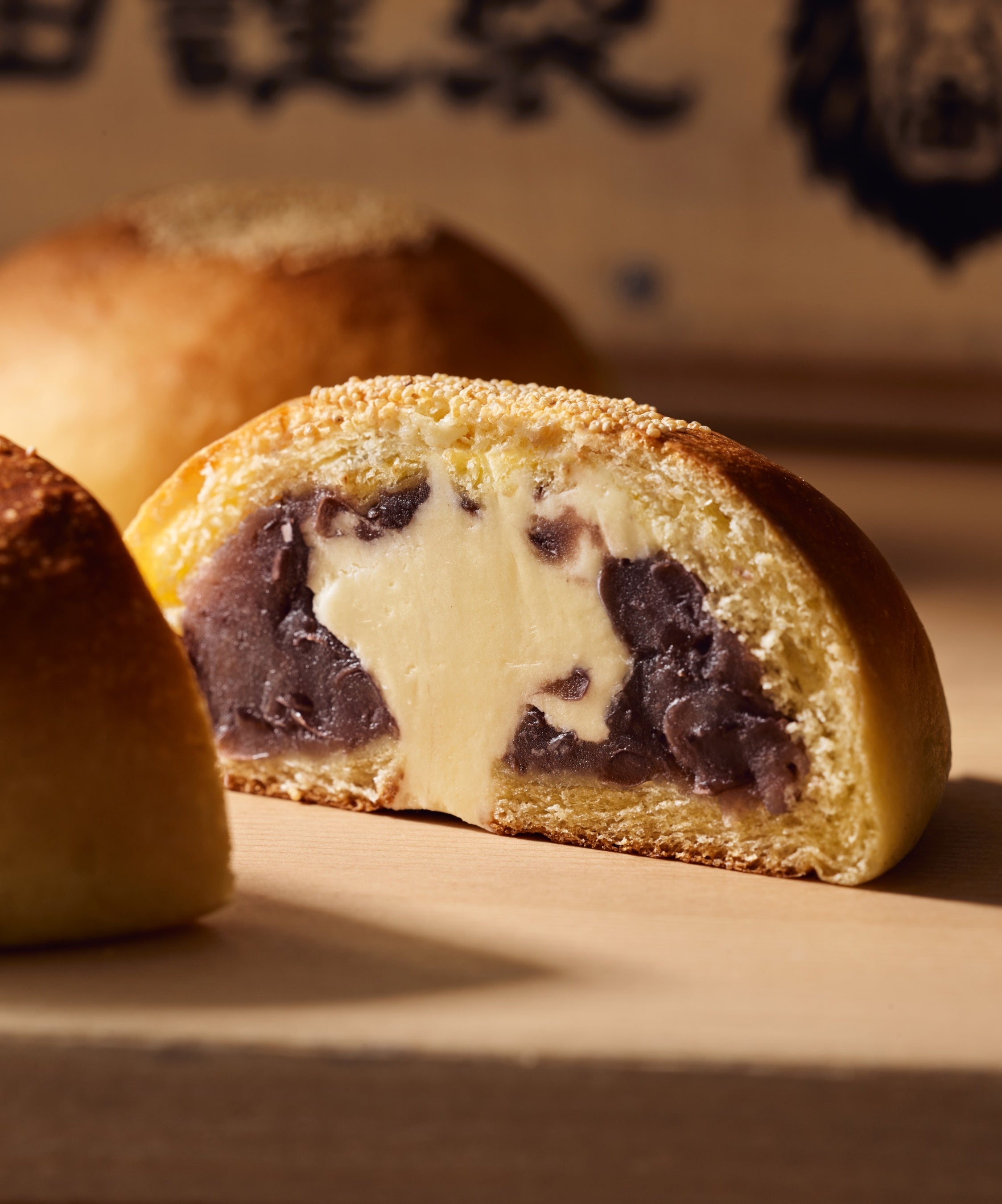 ・希少な北海道産えりも小豆の餡子とバタークリームを、贅沢に包みこんだ「あんバタパン」