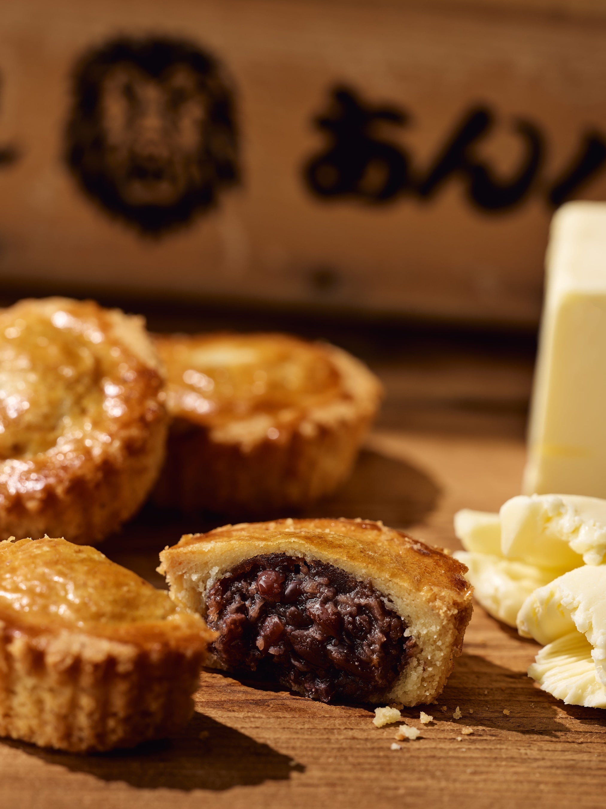 フィナンシェから立ち上るバターの芳醇な香りと、岡田謹製「あんバタ屋」が誇る餡子の妥協なき風味と滑らかな口当たり。これらの魅力を逃さぬよう高温で香ばしく焼き上げ、土産にもふさわしい洒落た一品に仕上げました。