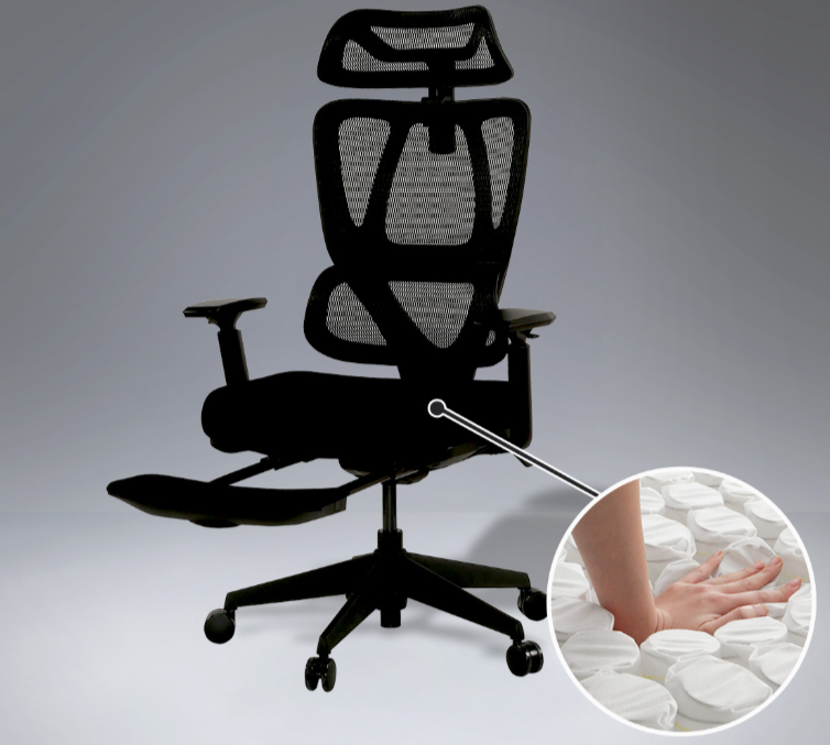 ポケットコイルを座面に使用することで、体圧分散性に優れ、長時間座っても疲れにくくなります。