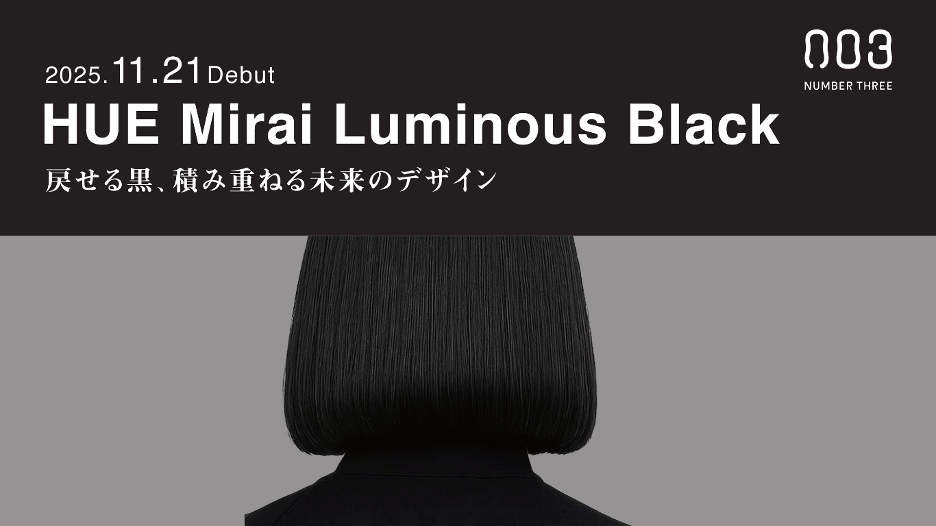 戻せる黒、積み重ねる未来のデザイン「HUE Mirai LB」※1 および、プロの施術をもっと快適に「ナンバースリー プロテクトオイルスプレー」を2025年11月21日に発売いたしました。