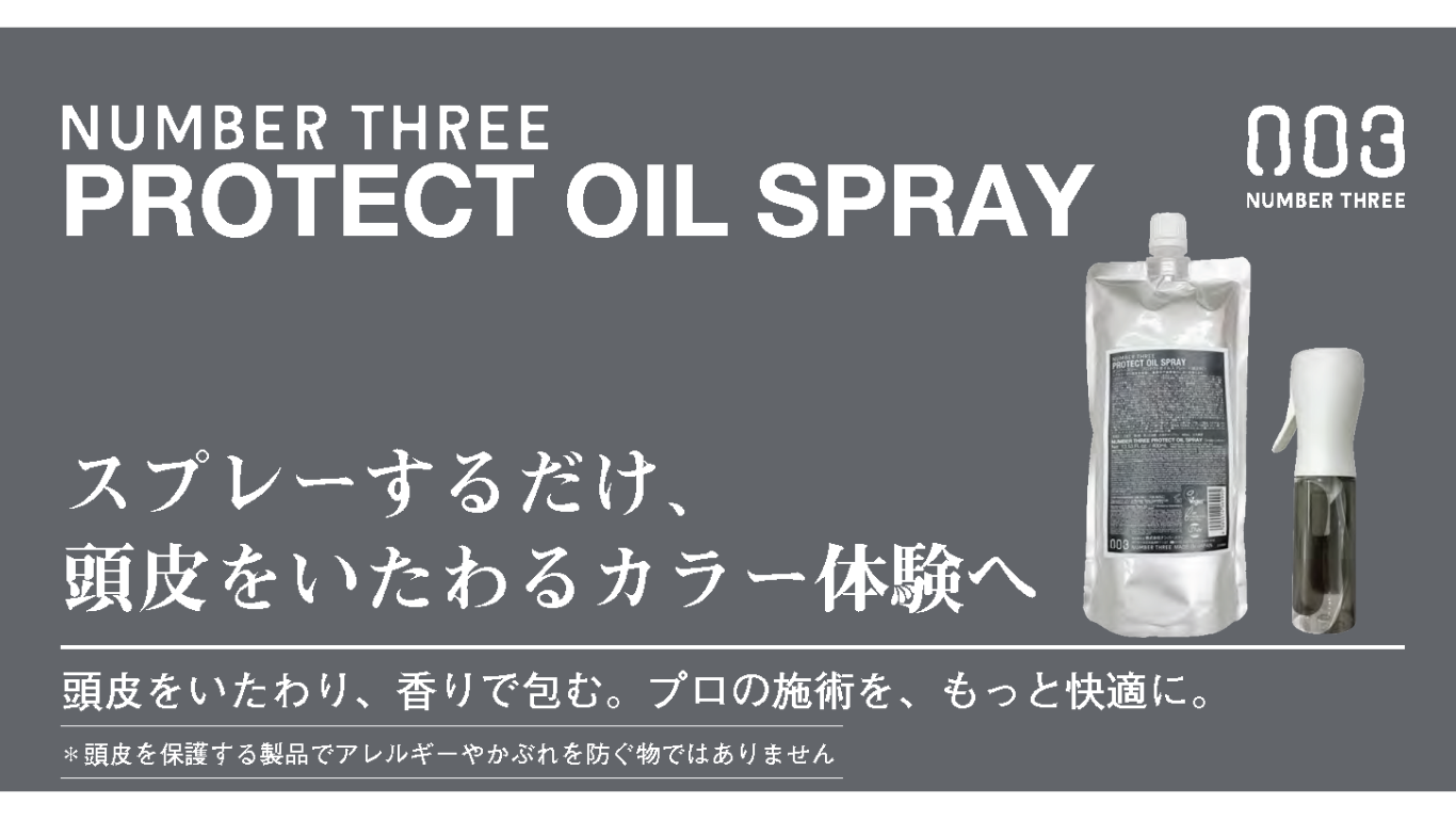 スプレーするだけ、頭皮をいたわるカラー体験へ。『ナンバースリー プロテクトオイルスプレー』