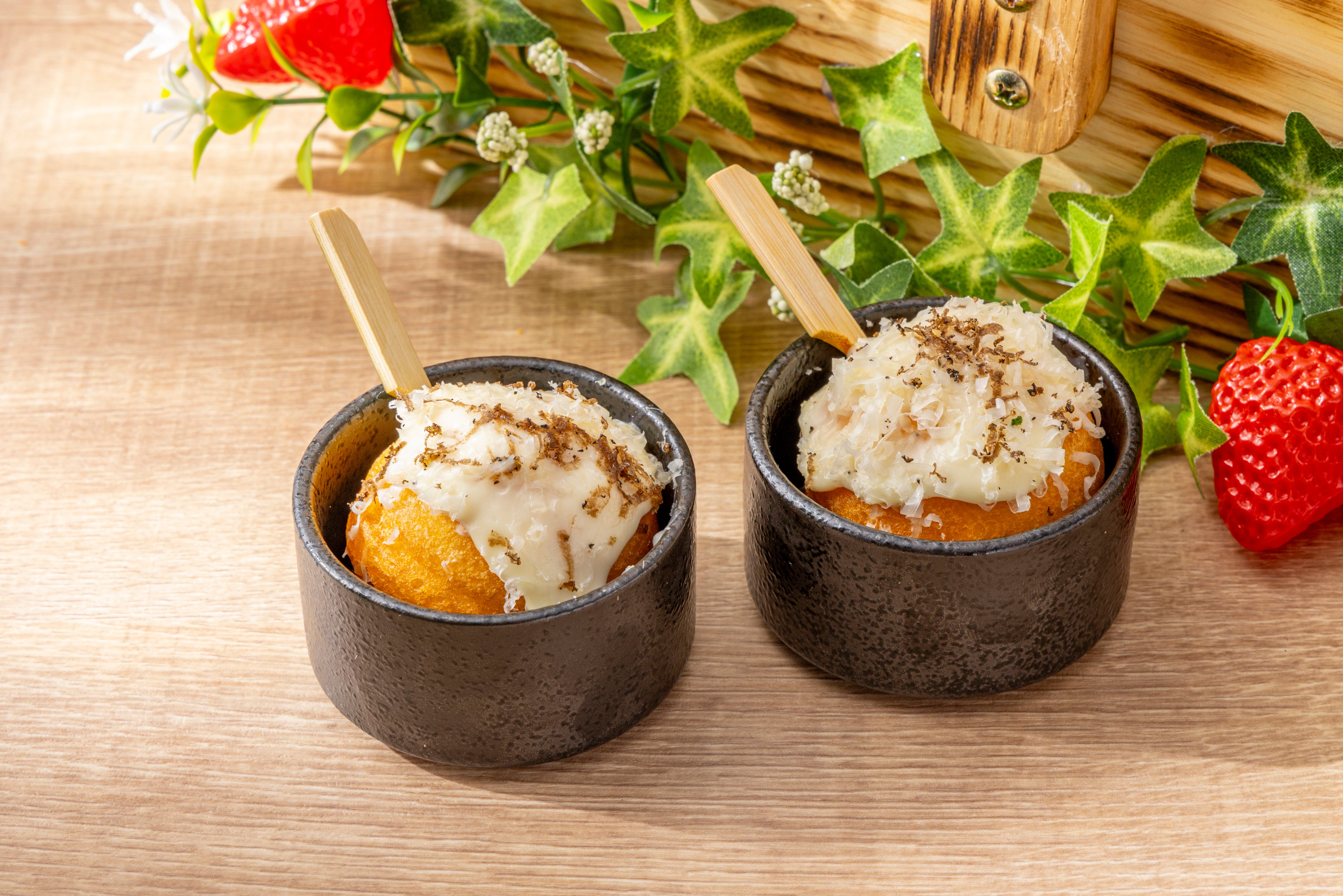 その他にも、苺とトマトを煮詰めた自家製ケチャップを添えた「牛肉のクロケット ストロベリーケチャップ」、エスプーマでふんわりとした口どけに仕上げたドーナッツに、トリュフ香るグリュイエールチーズのフォンデュをまとわせた「トリュフチーズドーナッツ」、メトロポリタングリルの名物バーガーをスモールポーションで味わえる「シグニチャーバーガースライダー」など、多彩なラインナップをお楽しみいただけます。