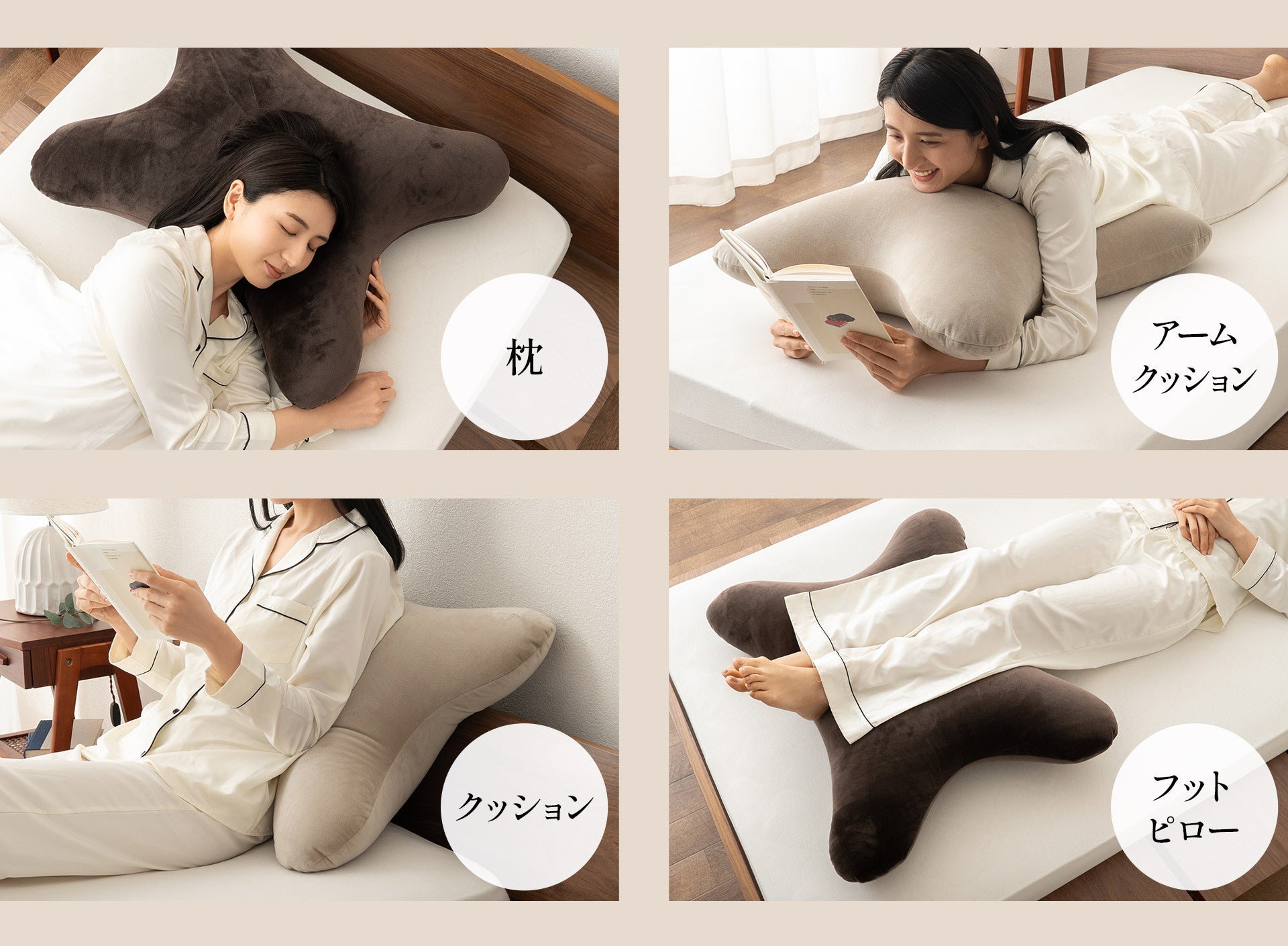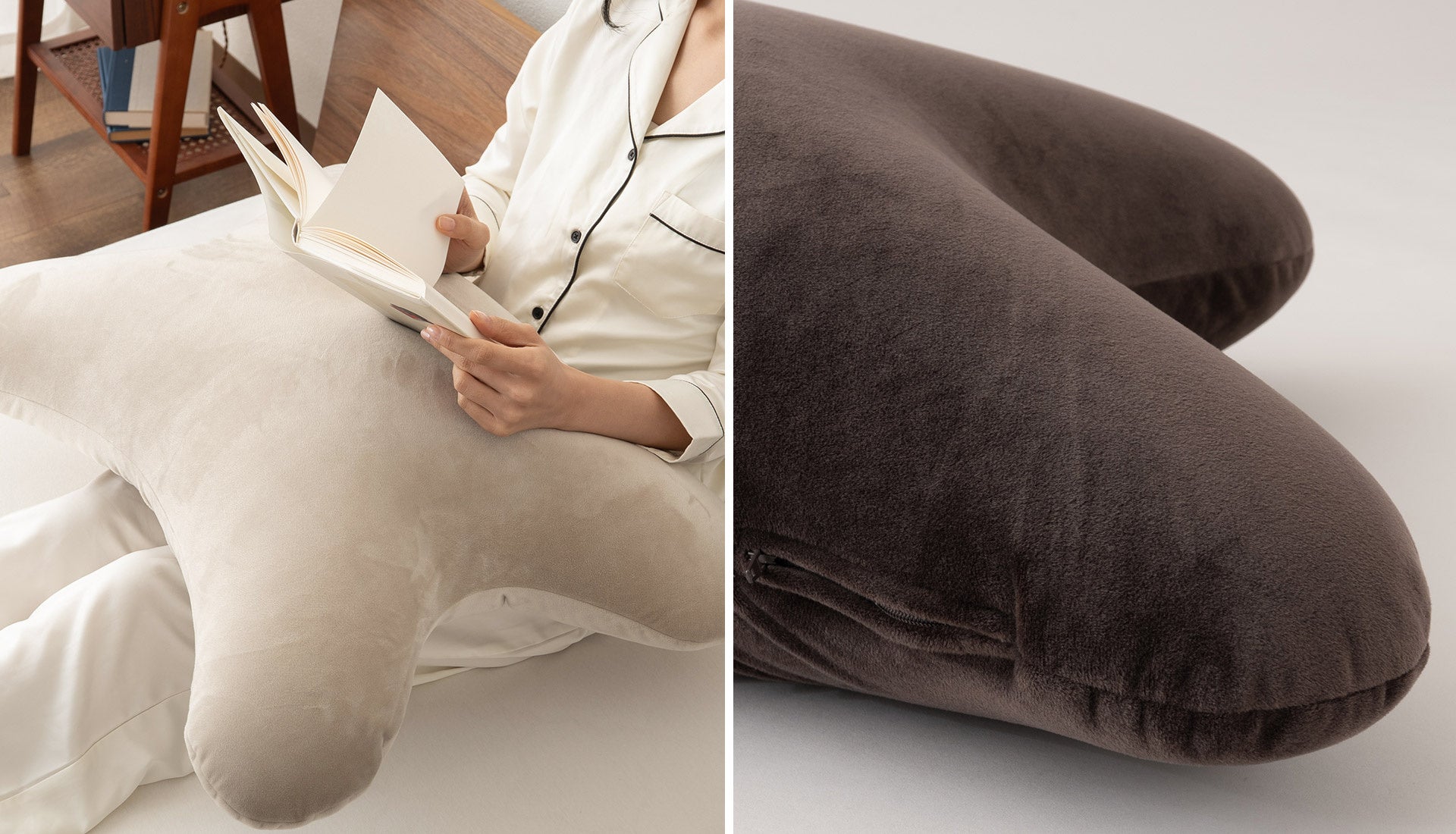 就寝時は枕や抱き枕として、ソファではリラックスクッションとして、脚に添えればフットピローとしても使用可能。そのときの姿勢や気分に合わせて使い方を選べるため、ひとつあるだけで日常のくつろぎ時間が自然と広がります。