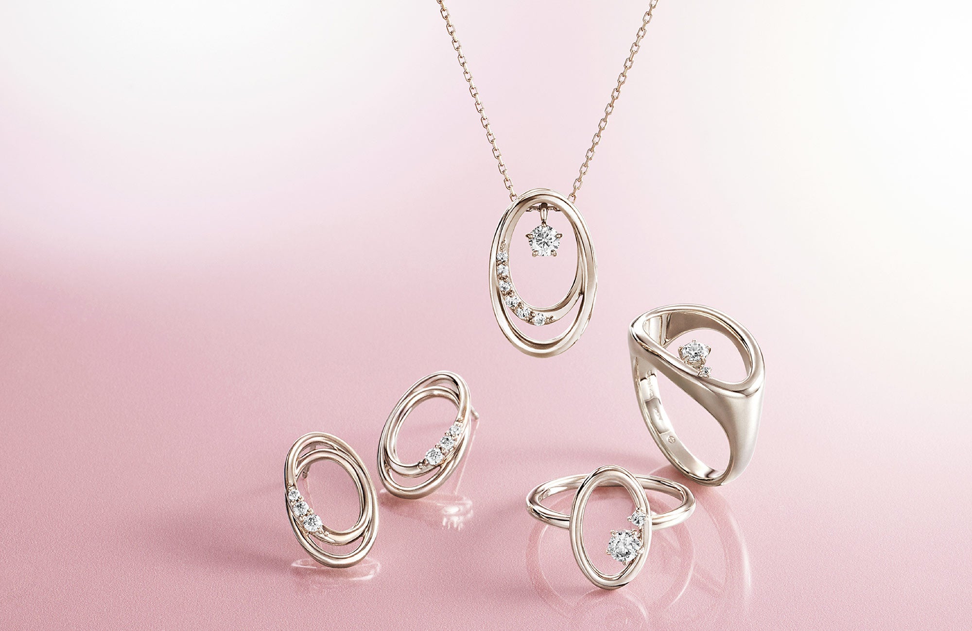 Canal 4℃では初となる柔らかなピンクシルバーを使用。そこに、モアサナイトやダイヤモンドの繊細な輝きを掛け合わせ、日常にそっと寄り添う上品な存在感を演出。自然が生み出した黄金比のオーバルモチーフが、調和と美しさを静かに語りかけます。ネックレスやリング、ピアスなど、それぞれに異なる表情がありながら、共通して「静けさの中に宿る意志」を感じさせるジュエリーに。