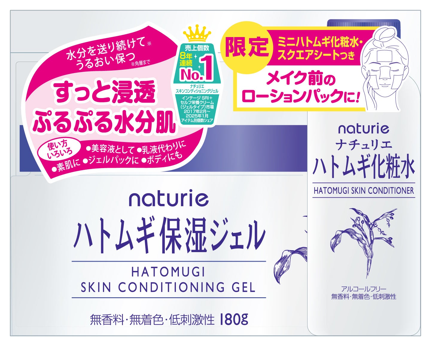 製品名:ナチュリエ ハトムギ保湿ジェル 限定ミニハトムギ化粧水&スクエアシートつき