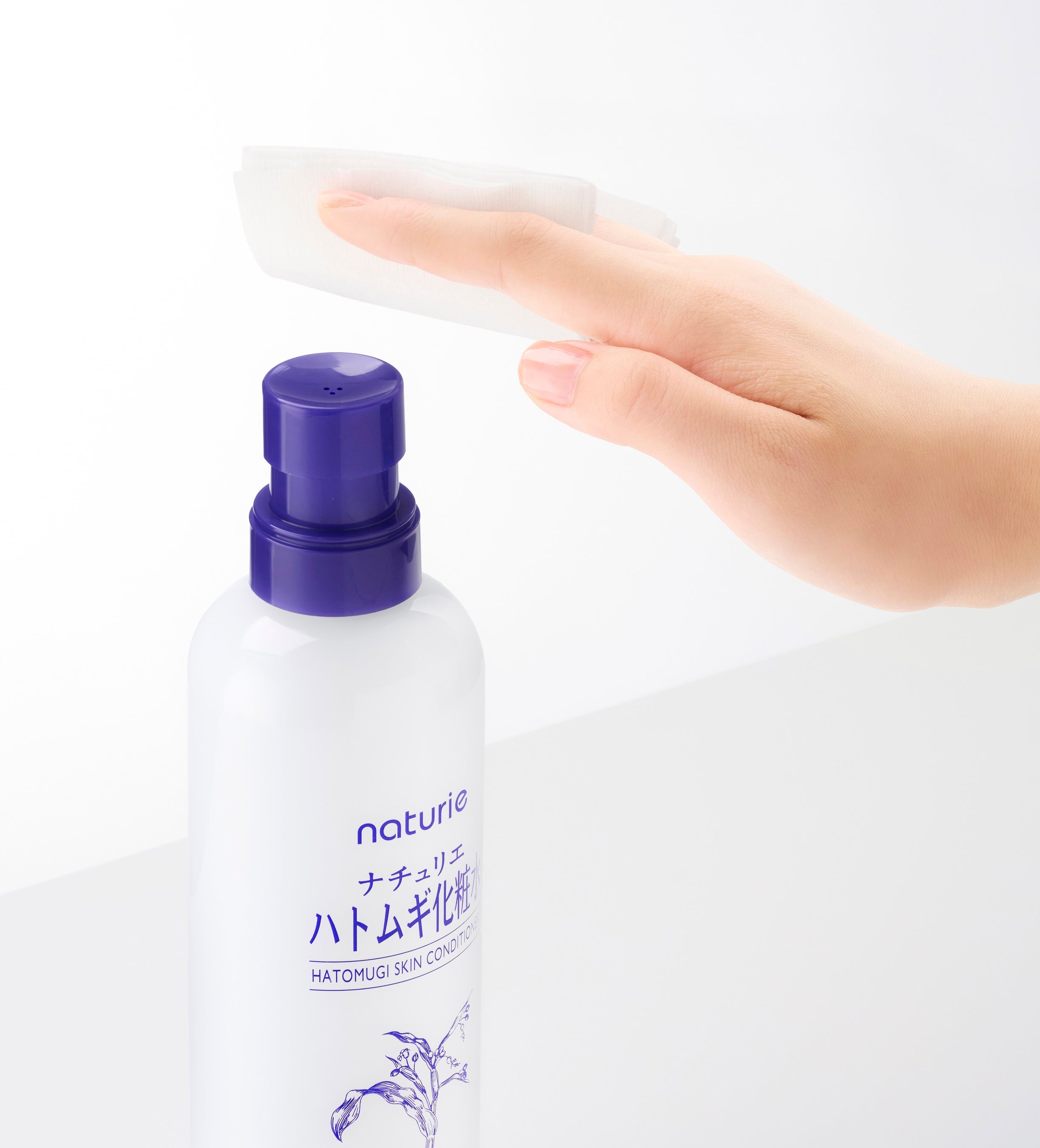 さっぱりみずみずしく潤う「ハトムギ化粧水」に、装着して使えるポンプヘッドをセット。