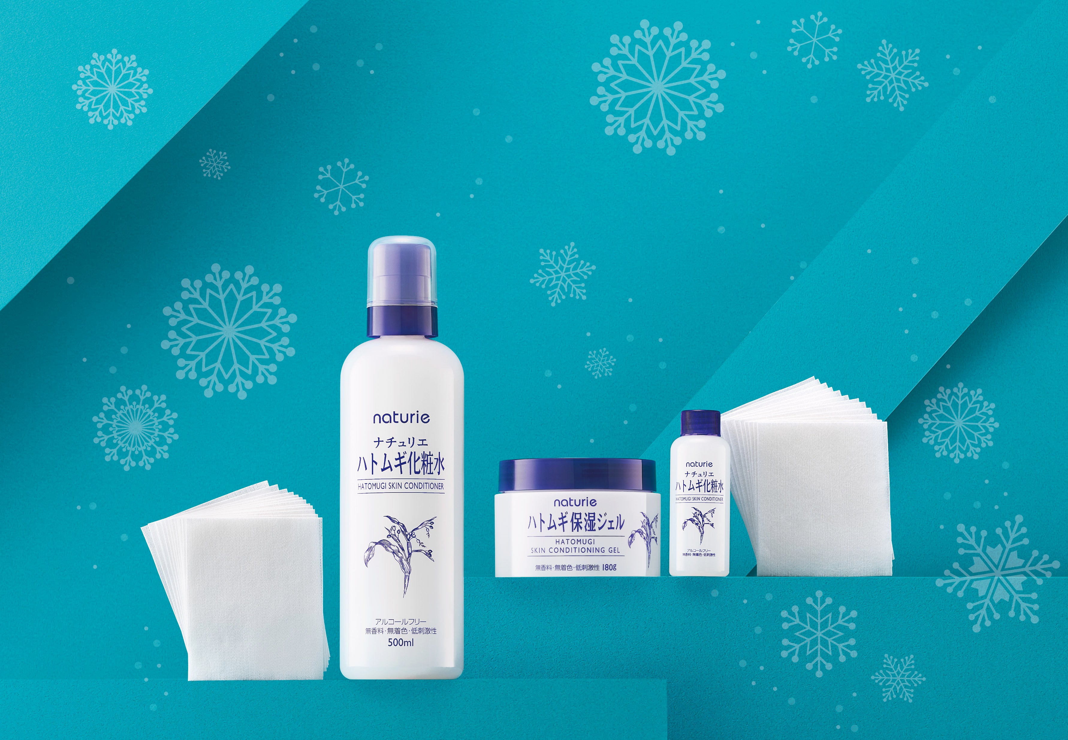 約2人に1人が悩む冬の化粧崩れ対策に。売上個数No.1※1のナチュリエ ハトムギ化粧水、ハトムギ保湿ジェルで、朝の「メイク前パック」が簡単にできる冬の限定品2種が登場!