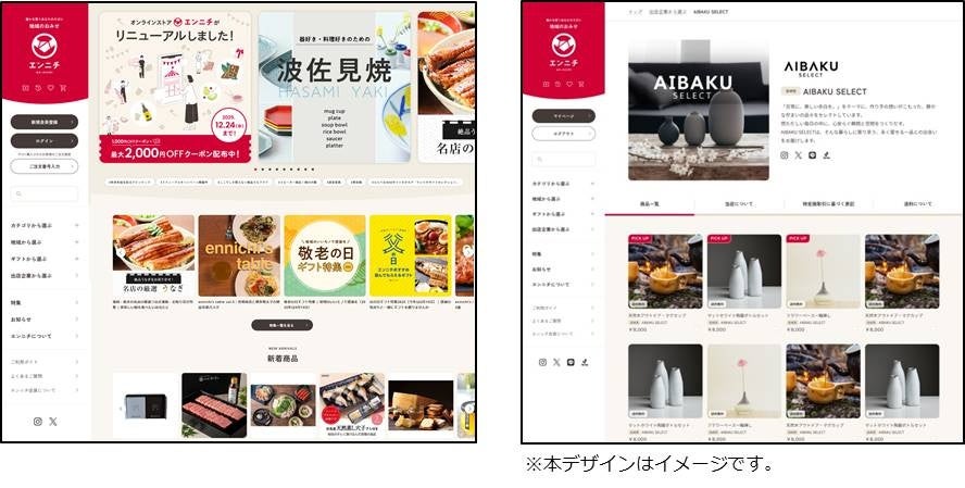 今回のリニューアルでは、「誰かを想うあなたのそばに 地域のおみせ『エンニチ』」をコンセプトに掲げ、オンラインストアのサイトデザインを一新いたしました。誰かを思い浮かべながら選ぶ時間がより心ゆたかで特別な体験となるよう、操作性の向上を図るとともに、作り手が込めた想いやこだわりが分かりやすく伝わるよう、紹介内容を充実させました。