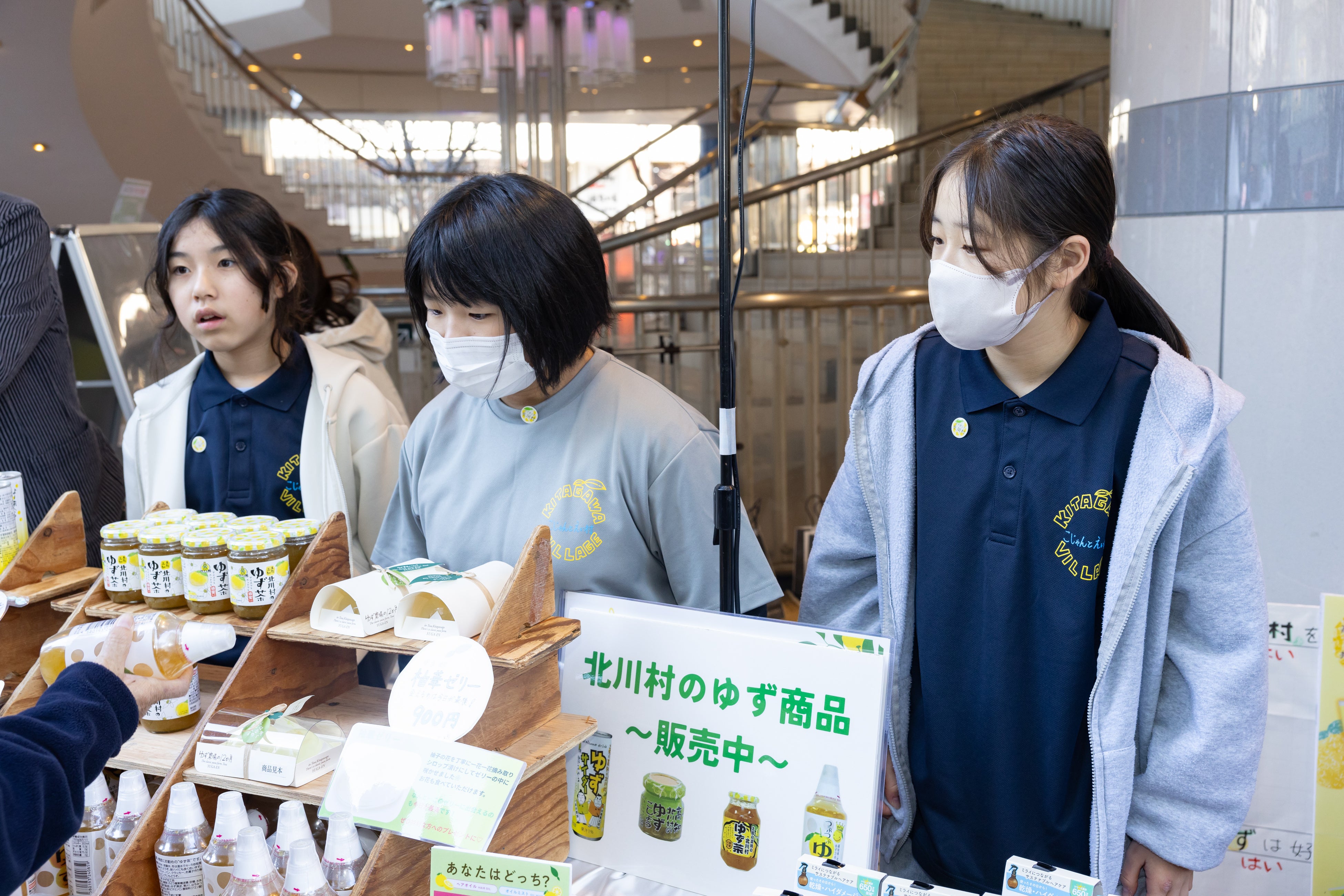 小学5年生~中学3年生の北川村の子どもたちが参加。2022年から毎年PRイベントを実施しており、今回、物産品の売上が過去最高となりました。